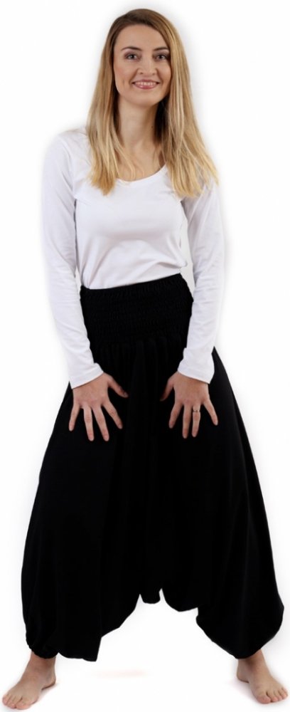 Turecké kalhoty, harémové kalhoty, sultánky, alladinky, sukňokalhoty- tím vším můžeme nazvat tyto neuvěřitelně pohodlné kalhoty, ve speciální úpravě i pro těhotné ženy. V pase mají kalhoty tzv. žabičkování, tj. soubor několika měkkých 1mm gumiček, které spolu tvoří široký měkký lem, který může obepínat bříško nebo jej můžete posunout pod bříško. Kalhoty mají rozkrok až někde mezi koleny a kotníky,...