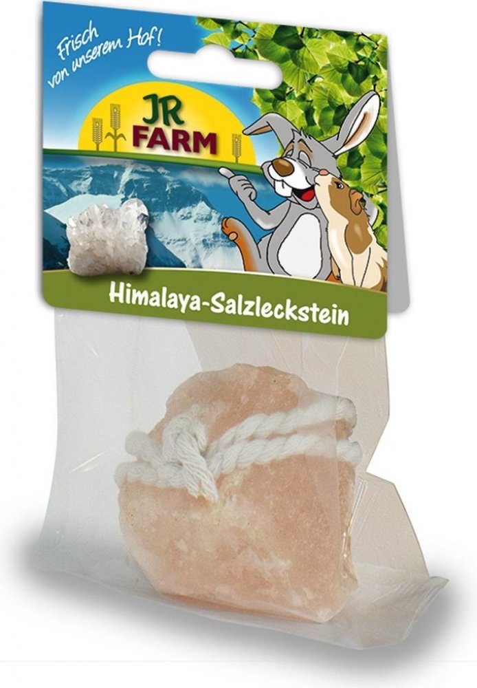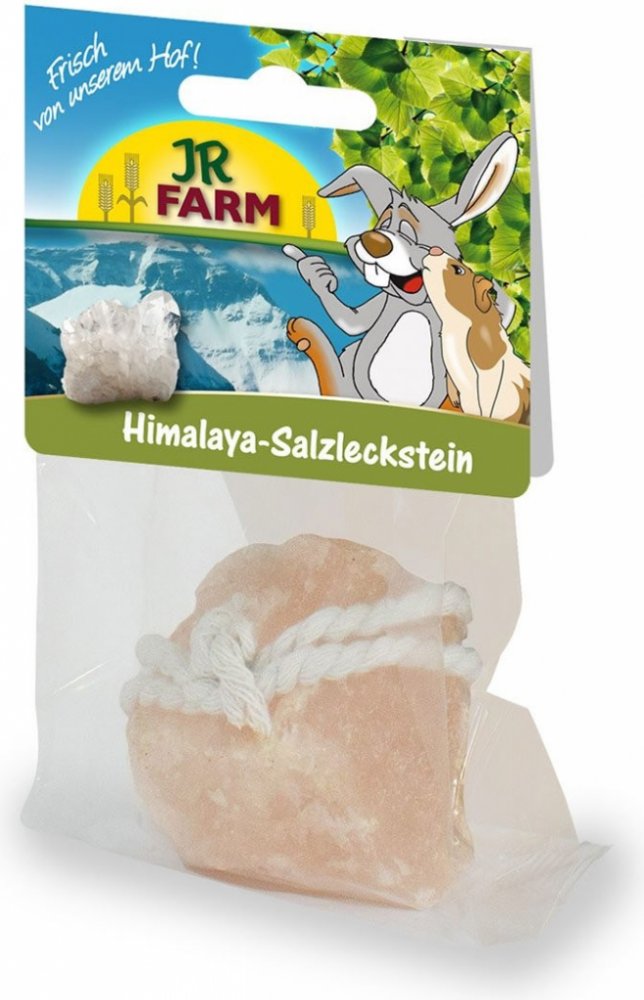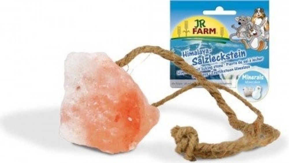 Himalaya-Salzleckstein / Himalaya Salt Licking Stone - doplňkové krmivo pro zakrslé králíky, morčata, potkany, křečky, myši, osmáky a činčily. 80g JR Farm Himalájská sůl poskytuje vašemu zvířátku důležité minerály a stopové prvky. Ručně vybíraná, nejkvalitnější sůl opatřená provázkem k zavěšení.