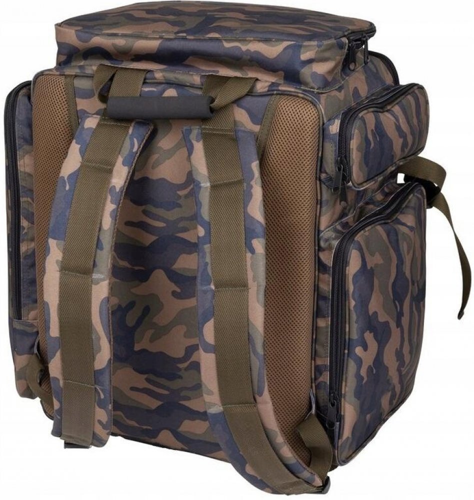 Batoh vhodný k uložení všech potřebných věcí pro celodenní vycházky k vodě. Disponuje hlavní přihrádkou. Ta je uzpůsobena tomu, aby se do ní skvěle vešly taštičky a pouzdra z řady Rova Accessory Bag (Small, Medium a Large). Boční kapsy umožňují snadný přístup k nejvíce používaným věcem. Batoh je opatřen polstrovanými a nastavitelnými popruhy a ergonomickými a polstrovanými zády. 500D ROVA Camo tkanina je pevná a voděodolná. Vysoce kvalitní polstrování zaručuje extra ochranu. Nechybí zátěžové zipy, popruh pro přenášení a zesílená voděodolná spodní část. Externí poutka s přezkou slouží k připevnění podběráku nebo plovoucího saku. Prostorná hlavní komora disponuje síťkovanou kapsičkou. Parametry: Rozměry: 50 x 44 x 30 cm Objem: 70 l