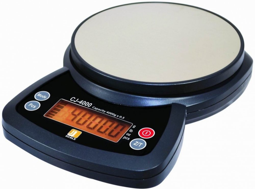 Kvalitní počítací váha JScale CJ-4000 s váživostí do 4000 g a přesností 0,5 g.