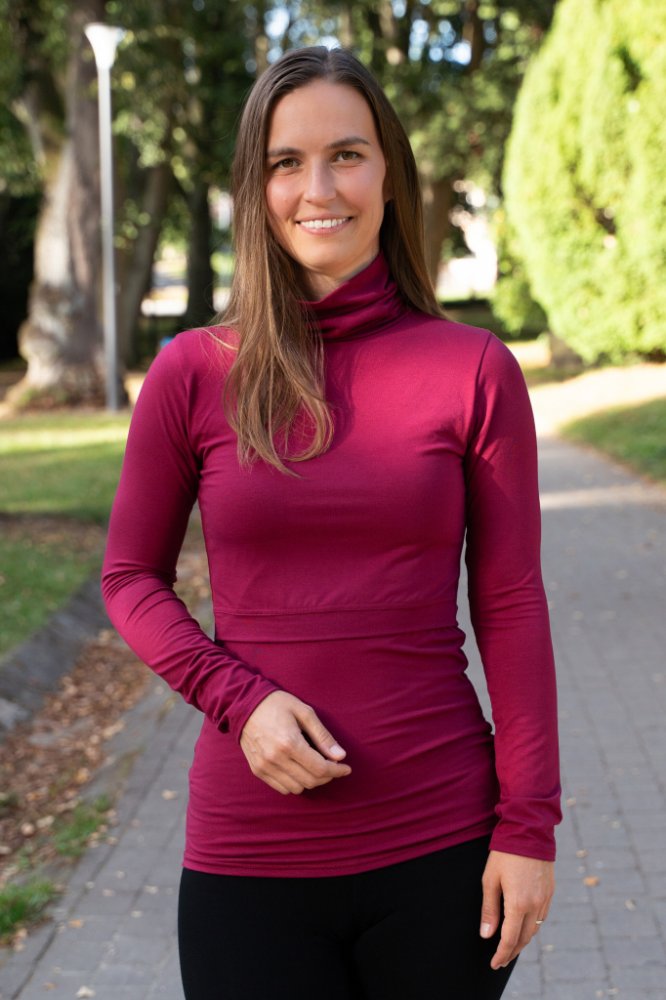 Náš kojicí rolák má projmutý střih a díky své pružnosti výborně sedí, takže dokáže vašemu těhotenskému či poporodnímu bříšku poskytnout dostatek pohodlí. Rolákové provedení (až ke krku) oceníte zvláště v zimních měsících, protože vám nebude foukat pod bundu.