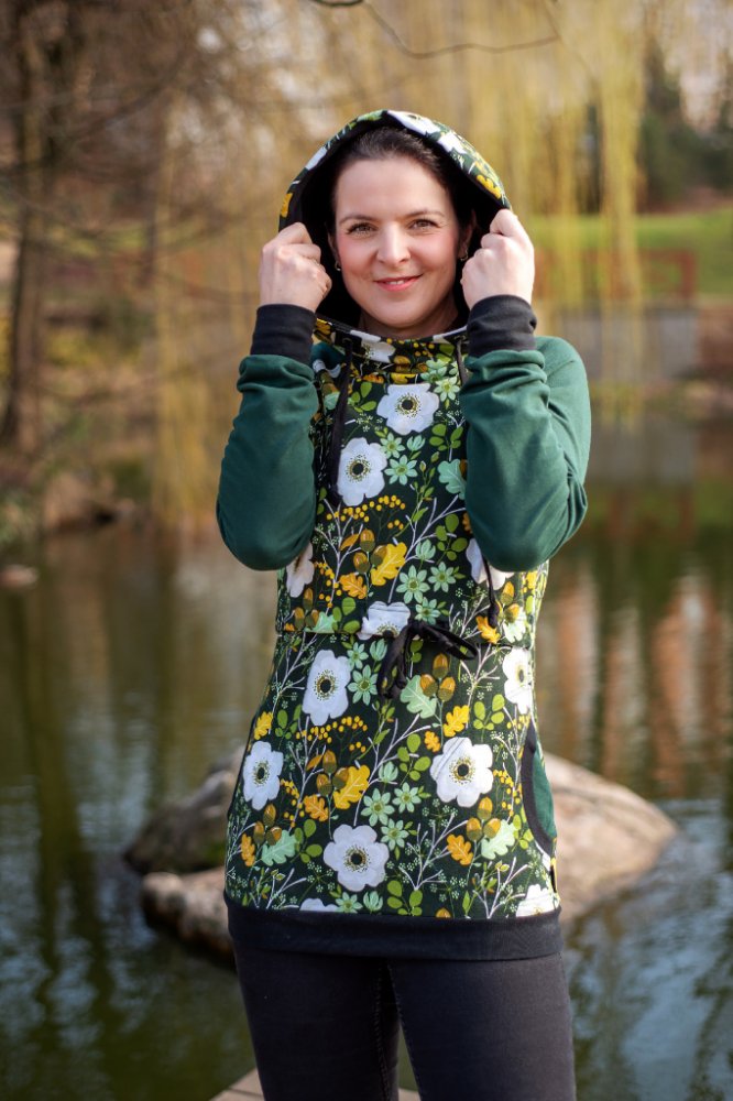 Naše zelená květovaná limitka není jen o pohodlí a praktičnosti, ale také je to úžasně stylový kousek do každého ročního období. Tmavě zelená barva přírody působí nenuceně a přirozeně, rozkvetlý vzor s výraznými bílými a žlutými rostlinkami do modelu vnáší prvek ženskosti. Ať už se v téhle měkoučké mikče vydáte do rušného města nebo s kočárkem do parku, budete se v ní cítit „jako doma“.