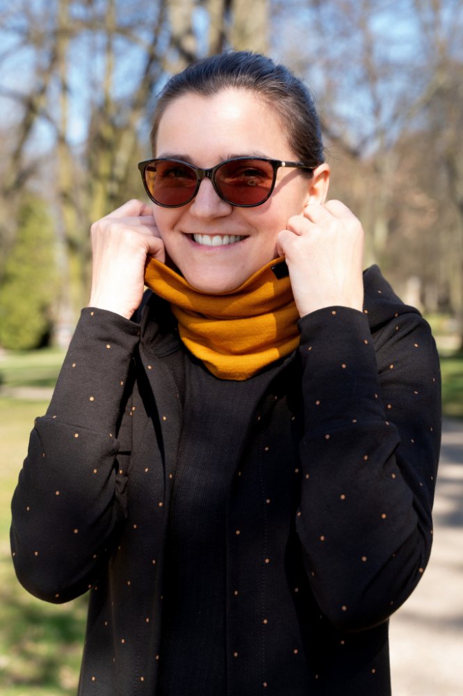 Nákrčníky šijeme ze dvou vrstev 100% merino vlny – každá o gramáži 180 g/m². Díky dvojitému vrstvení můžete nákrčník nosit celoročně a zahřeje vás i v lednových mrazech. ❄️