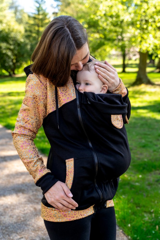 Zabalte se se svým děťátkem do barev připomínajících čaj a podzim! Okrový odstín je dokonalým ztělesněním přirozenosti, je úžasně nenucený, klidný a ve spojení s černou klasikou a zlatavými detaily i velice elegantní. V tomto úžasném kousku vše krásně ladí – od větruvzdorných nápletů na rukávech až po rozkošná ouška na kapucce miminka. Věřte, že jakmile si tuhle mikču pořídíte, už ji nedáte z ruky!