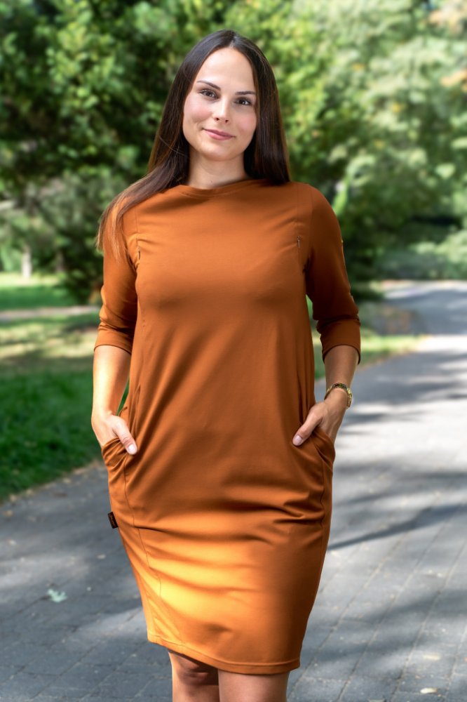 Jsem máma Oversize těhotenské a kojicí šaty hořčicové