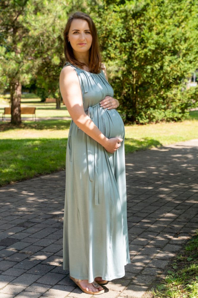 Jsem máma Univerzální těhotenské a kojicí MAXI šaty Mátové
