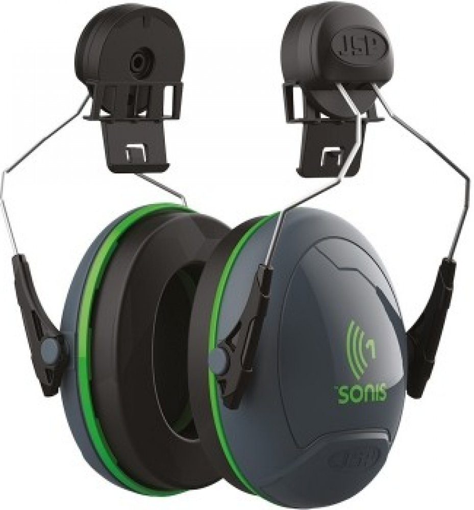 mušlové chrániče sluchu Sonis® ve variantě upevnění na přilbu s útlumem 26 dB; možnost optimálního nastavení polohy chrániče a zajištění ideálního komfortu a rozložení tlaku; snadná údržba PET a pěnou plněných těsnících polštářků a těsnicích kroužků; možnost různého barevného provedení mušlí a natištění firemního loga dle požadavků zákazníka; univerzální sloty přileb JSP pro snadné nasazení chráničů sluchu Sonis®; možnost kombinace s ochranným štítem JSP Surefit™