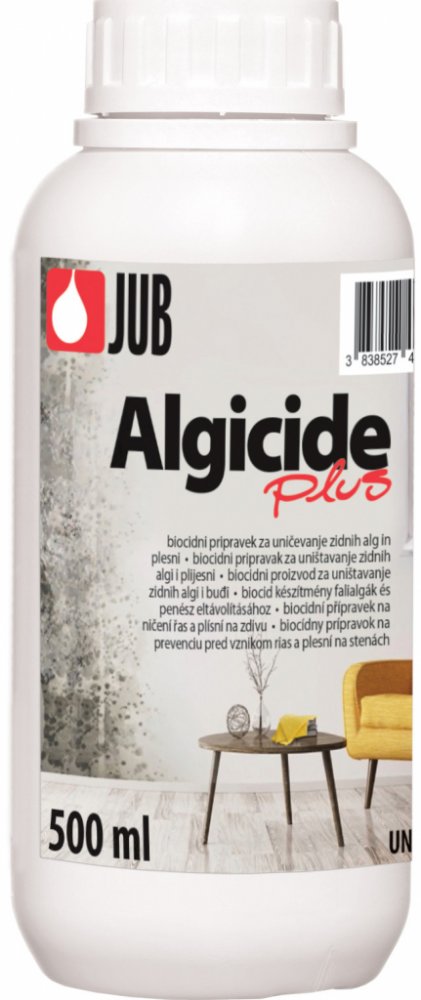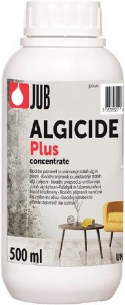 Algicid Plus dezinfekční biocidní prostředek na fasádní a vnitřní povrchy. Hluboko penetruje do podkladu a účinně působí proti nejvíce rozšířeným druhům řas a plísní, přičemž zcela odbarvuje zelené řasy na zdivu – ničí chlorofyl. Lze ho použít na všechny běžné druhy fasádních a vnitřních stavebních povrchů v obytných, firemních i veřejných budovách, v potravinářských objektech jako jsou pekárny, mlékárny, jatky nebo výrobny alkoholických i nealkoholických nápojů. Používá se výhradně jako samostatný léčebný prostředek, nikdy ne jako přísada do fasádních nebo malířských barev a jiných nátěrů, dekorativních omítek apod. Barva: nátěr je bezbarvý. Způsob aplikace: štětec, váleček Nářadí očistit vodou. Zabránit kontaktu s pokožkou a očima. Spotřeba: 50 - 100 ml/m2 Balení: 0,5 L