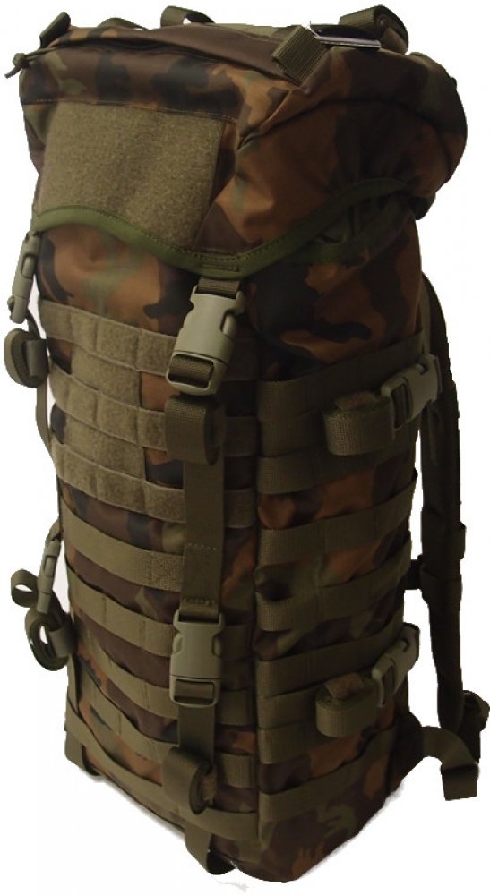 Batoh má namísto vnějších a bočních kapes molle / pams vazby, díky kterým si batoh upravíte doplňkovými kapsami (sumkami) k obrazu svému. Na čelní straně batohu jsou v horní části molle vazby s velcro (suchým zipem) úpravou pro umístění nášivky nebo rychlo-odnímatelné VELCRO sumky.