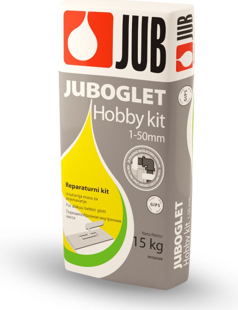 HOBI KIT je vhodný na všechny druhy omítek, neomítnutý beton, cihelné a pórobetonové zdivo a další konstrukce. Podklad: pevný, suchý a čistý. Savé podklady před vyrovnáním navlhčíme vodou. Barva: přírodní bílá. Po zaschnutí lze povrch natírat všemi druhy disperzních barev. Pro dosažení dokonalého vzhledu povrch před natíráním jemně vyrovnáme jubolinem nebo nivelinem. ES prohlášení o shodě podle EN...