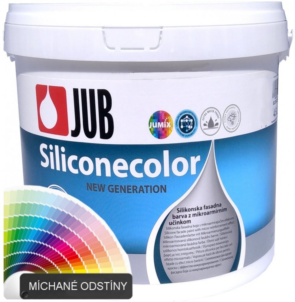 JUBIZOL SILICONE COLOR je určen i pro udržovací nátěry právě fasádních povrchů napadených řasami a plísněmi, pokud je samozřejmě předem účinně dezinfikujeme. Barva se vyznačuje vynikající kryvostí, dobrou paropropustností a dlouhodobou vysokou vodoodpudivostí, UV záření a jiným druhům povětrnostního zatížení, poměrně málo na něm ulpívá prach a jiné nečistoty, takže barva je vhodná do jakýchkoli klimatických poměrů a rovněž na fasádní povrchy silně vystavené srážkám (vysoké objekty s minimálními římsami resp. přesahy střech).