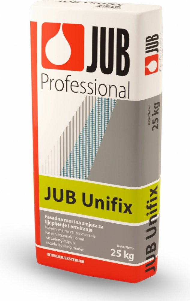 JUB Unifix lepidlo a fasádní vyrovnávací omítka na EPS je prášková cementová směs s přidáním polymerních pojiv, určená k lepení tepelněizolačních desek z expandovaného polystyrenu na minerální podklady ak realizaci vyztužené základní omítky na tepelněizolačních deskách. Může se použít i k lepení pórobetonových (siporexových) bloků při stavbě lehkých příček. Vyznačuje se dobrou přídržností na expan...