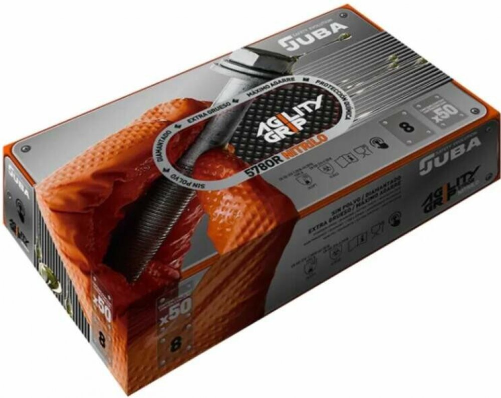 Nitrilové rukavice Juba 578OR AGILITY GRIP jsou jednorázové ochranné rukavice bez pudru, určené pro profesionální i každodenní pracovní použití. Díky diamantové textuře po celém povrchu zajišťují vynikající úchop i v náročných podmínkách.