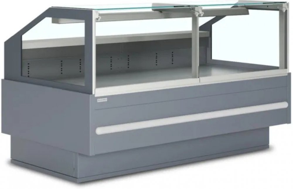 Chladicí vitrína obslužná ventilovaná s čelním rovným výklopným sklem. vitrína s extra velkou výstavní plochou.Vlastnosti: