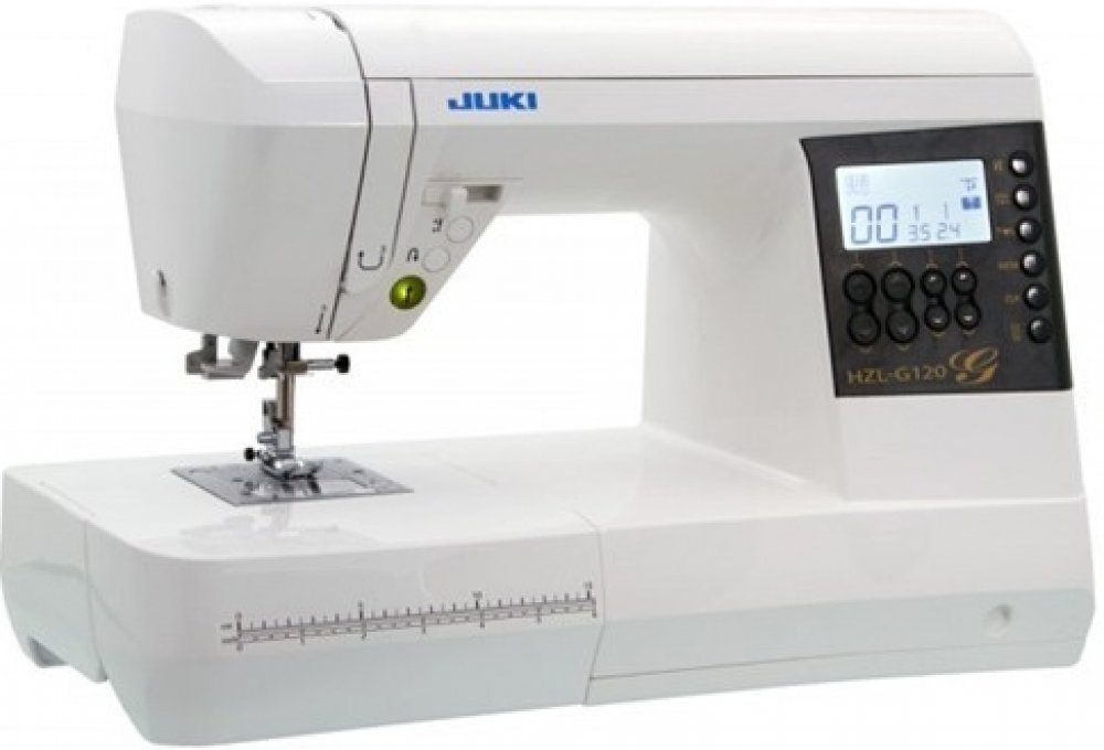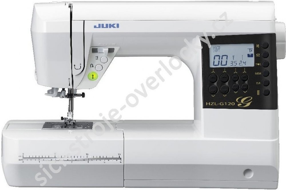 Elektronický šicí stroj Juki HZL-G120 s velkým prostorem pro šití, s podsvíceným LCD displejem.