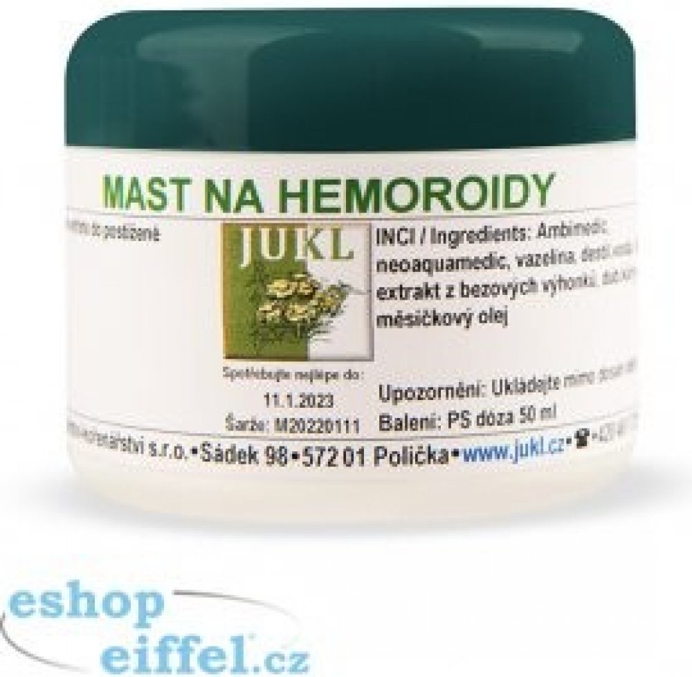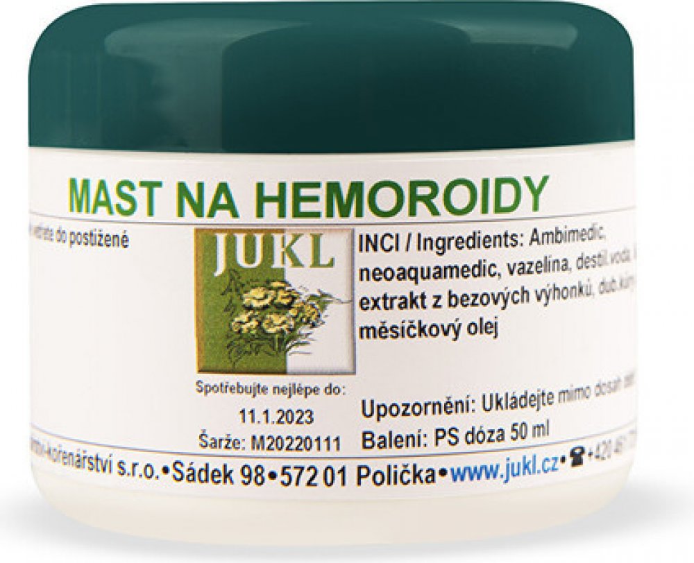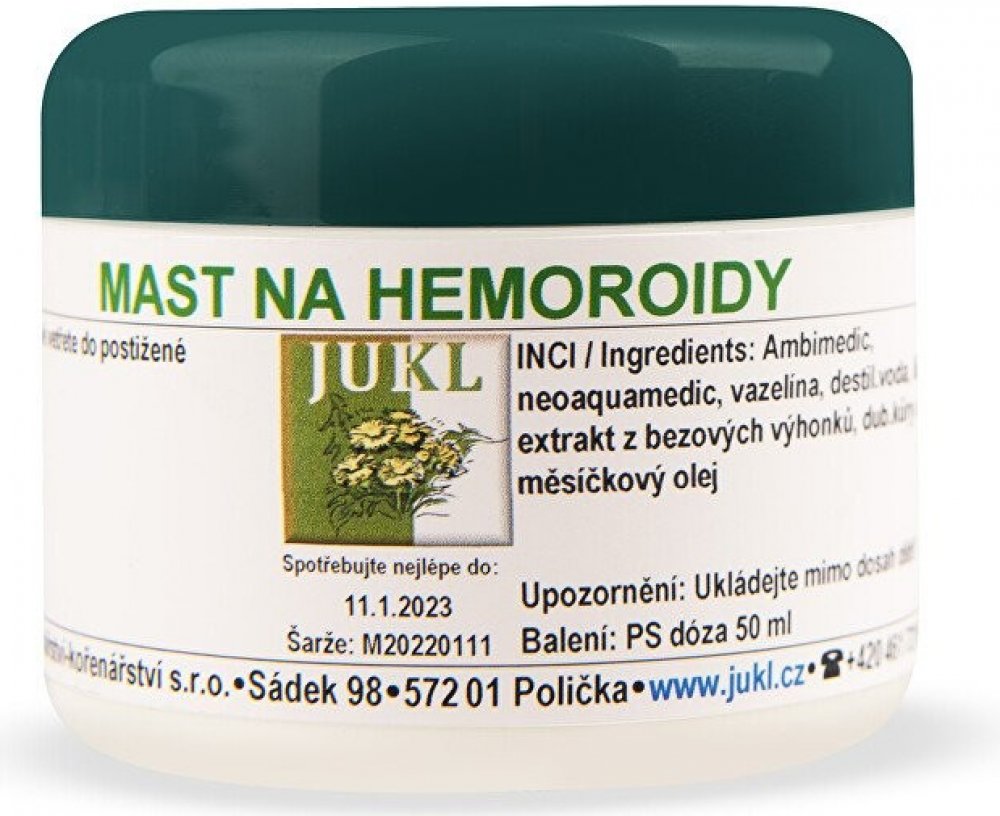 Použití: Mast citlivě vetřete do postižené oblasti. Při vnitřních hemoroidech ošetřete pokožku kolem řitního otvoru.