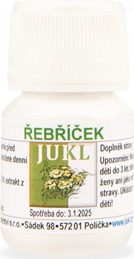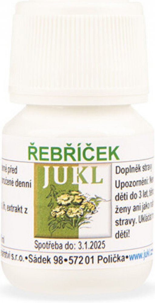 Použití: Řebříček obecný se vyznačuje vysokým obsahem hořčin, povzbuzuje vylučování žaludečních šťáv a tím i vyšší chuť k jídlu. Naši tinkturu s úspěchem používáme v kombinaci s bylinným čajem "Játra". Působí příznivě v době menstruace, upravuje krvácení.