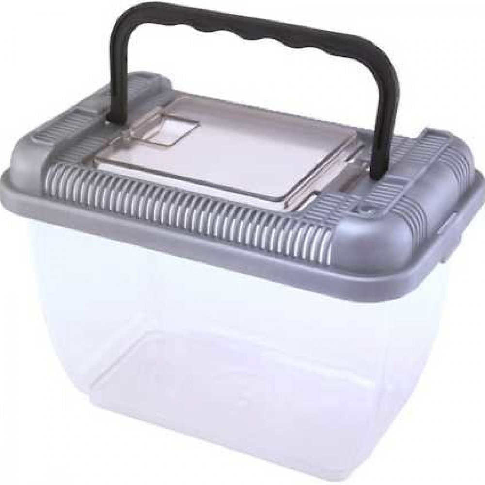 Lehký přenosný box pro terarijní zvířata s větracími otvory ve vrchní části.