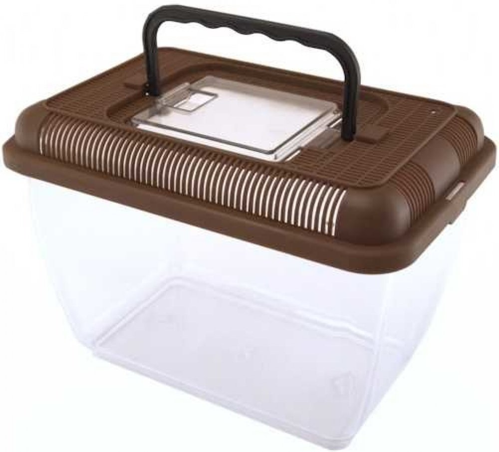 Lehký přenosný box pro terarijní zvířata s větracími otvory ve vrchní části.