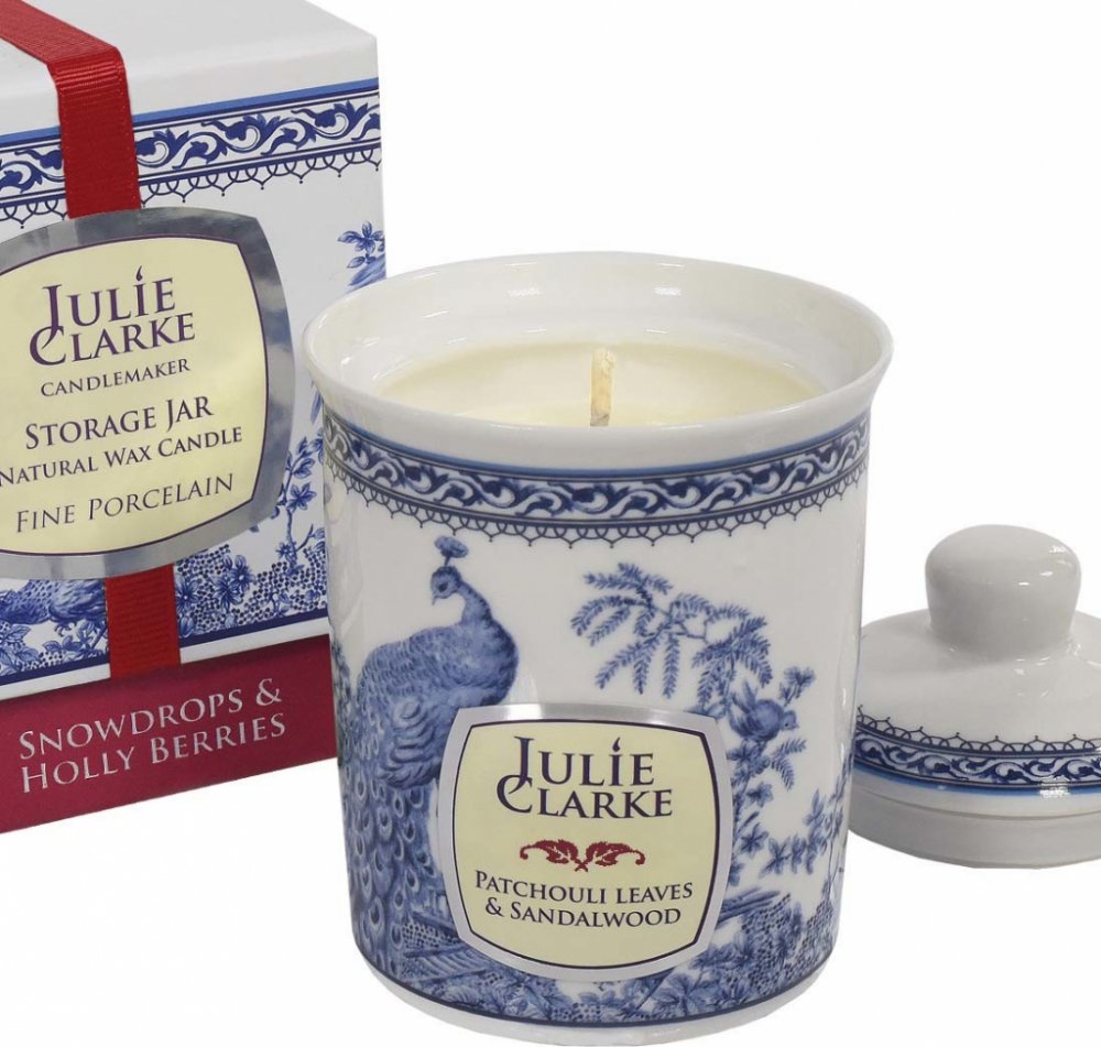 Julie Clarke Candlemaker Blue Peacock Sněženka a Cesmína 150 g