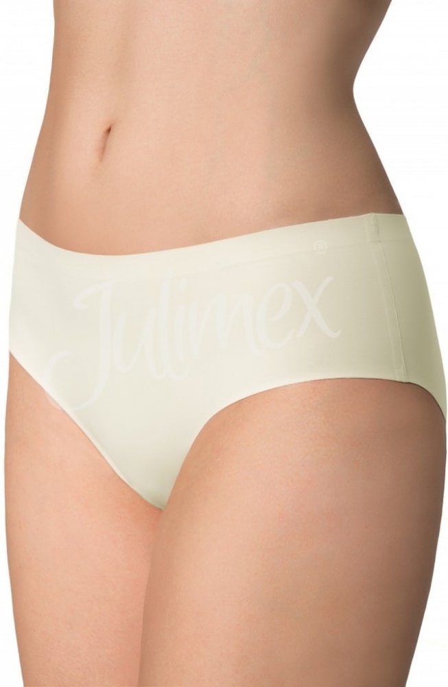 - dámské hladké kalhotky značky Julimex. Jemné a dokonale hladké, bezešvé kalhotky klasického střihu v různých barvách. Horní obvod kalhotek a obvod nohaviček je zpevněn skrytou pevnou gumičkou, která se dokonale přizpůsobí Vašim partiím. Do vnitřního dílu je zapracován bavlněný klínek. Kalhotky jsou vyrobeny laserovou metodou a díky tomu dokonale přilnou k tělu, nikde se nezařezávají a budou skvělé při nošení přilnavého nebo letního oblečení. Tyto elegantní kalhotky jsou velmi příjemné na dotek a jsou baleny v dárkové krabičce s fialovou mašličkou.