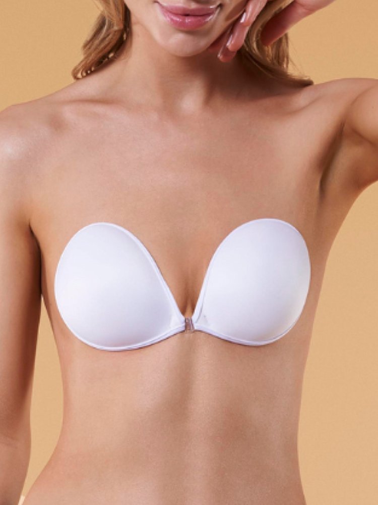 Kvalitní samodržící pushup podprsenka pro Váš svůdný dekolt. Tvoří ji dvě měkce vyztužené misky spojené uprosřed klipem. Jejich vnitřní strana je potažená tenkou, vytvarovanou silikonovou vrstvou s efektem lepidla. Ta je přikrytá ochrannými fóliemi, které je potřeba uchovat a po použití podprsenky umístit zpět. Pro Váš lepší pocit při nošení silikon nepokrývá střed. Produkt byl dermatologicky test...