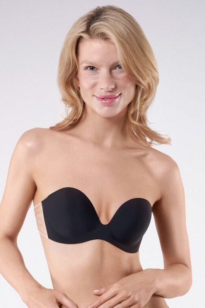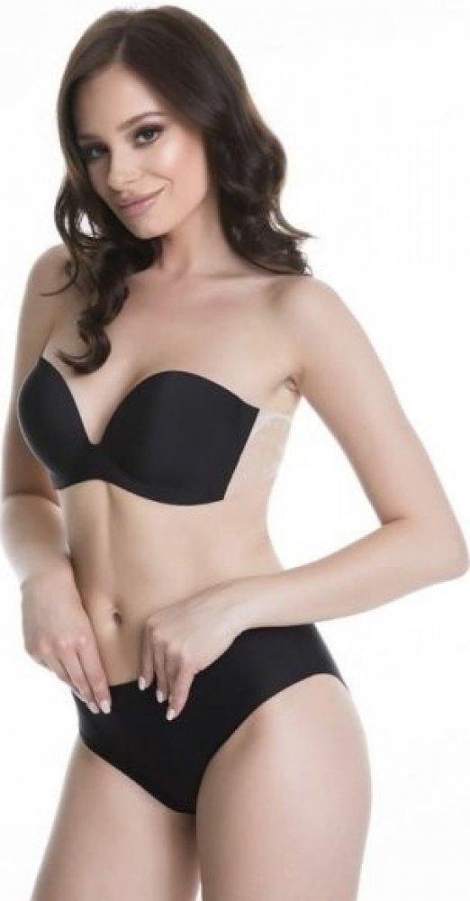 Perfektní model podprsenky, který se hodí do hlubokých výstřihů. Krásně nechá vyniknout dekolt i ramena. Perfektně sedí pod různé outfity. Střih modelu je doplněný bočními výztuhami. Samolepící, transparentní křidélka poskytují komfort a plně nahrazují klasický obvod. Košíčky jsou vyplněny silikonovým lepidlem, který přilne ke kůži a poskytne plnou oporu i modelaci. Po jeho omytí můžete podprsenku...