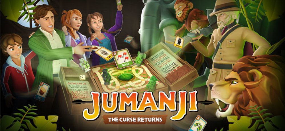 Hra JUMANJI: The Curse Returns, která vychází z filmu z roku 1995, spojuje deskovou hru se strategií budování balíčků v reálném čase a přináší tak jedinečný zážitek z kooperativní hry pro více hráčů.