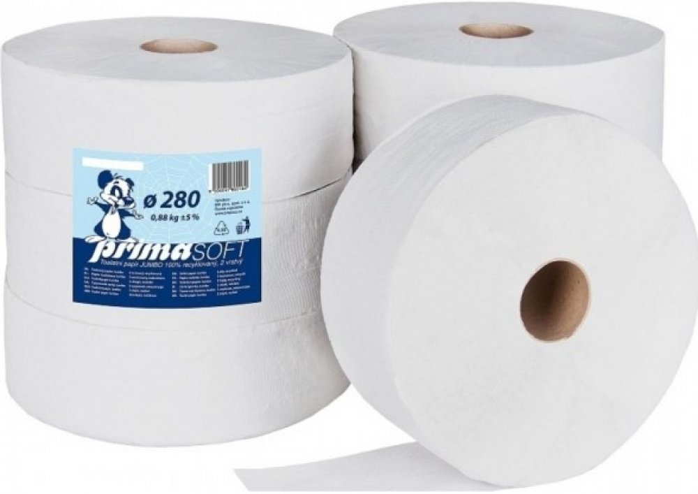 Průmyslový toaletní papír JUMBO Prima Soft 2-vrstvý, bílý recykl, návin 257 metrů, 280 mm - 6ks/bal.