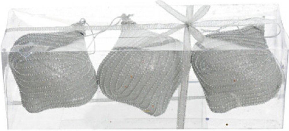 Vánoční závěsná ozdoba ve stříbrné barvě, zdobená korálky. Sada obsahuje tři kusy. Rozměr jedné ozdoby 9X9X9cm.Doplňující popis:9x9x9 cm