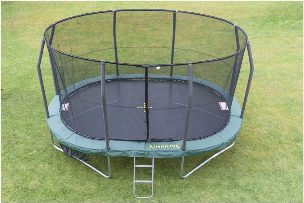 Trampolína Jumpking nabízí legraci nejen pro děti ale také dospělé. Zároveň vám pak umožní udělat něco pro zdraví svého těla! Tuto trampolínu využijete pro instalaci nad zem. Nebude tedy problém přesunout ji na jiné místo v případě potřeby. Nejvyšší nosnost trampolíny JumpKing Oval-Pod 3×4,5 m dosahuje 140 kg. Jako materiál na konstrukci byla použita galvanizovaná ocel a skákací plochu tvoří pp me...