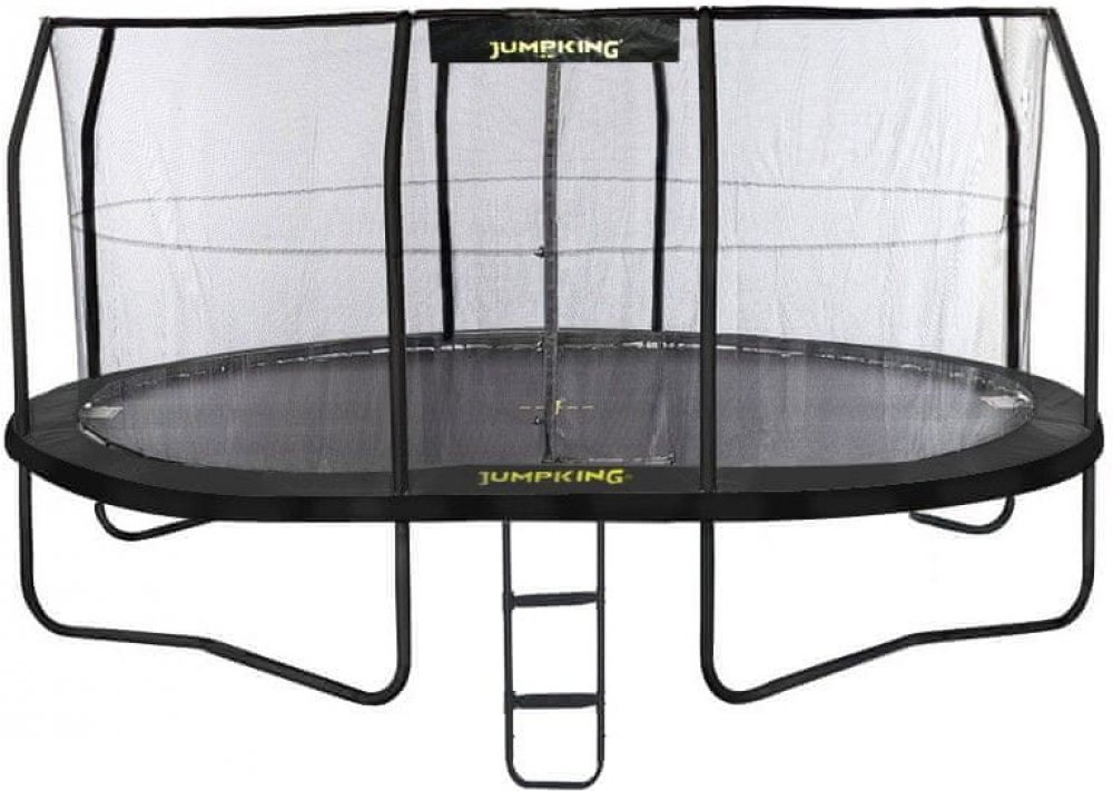 Trampolína JumpKING OvalPOD 4,3 x 5,2 mPokud chcete jen to nejlepší, tak trampolína JumpKING OvalPOD™ je určena právě Vám. JumpKING - OvalPOD™ JEDINÁ OVÁLNÁ TRAMPOLÍNA NA ČESKÉM TRHU to je konstrukčně unikátní typ trampolíny navržený a konstruovaný pro to nejvyšší zatížení a maximální bezpečnost. Základnu tvoří celopozinkovaný ocelový rám o síle 57 mm, zajišťující nekompromisní pevnost a stabilitu celé sestavy. Bezpečnostní obvodová ochrana je tvořena ochrannou sítí napnutou na dvou horizontálních prutech, které jsou připevněny přímo k obvodovým ohradníkům a k samotné základně. I zde jsou použity pružiny Eurospring™, zaklesnuté do rámu střídavě z vrchu a ze spodu. Sestava je vybavena zesíleným 25 mm silným obvodovým polstrem zakrytým laminovaným vynilovým potahem. Dodávka obsahuje trampolínu, kompletní obvodové bezpečnostní hrazení, ochranný potah na trampolínu a žebřík.MAXIMÁLNÍ BEZPEČNOST PODLOŽENÁ CERTIFIKÁTY:certifikace dle EN 71-14 TECHNICKÉ PARAMETRY Rám: Vysoce pevný ocelový, galvanicky celo pozinkovaný rám na čtyřech W nohách. (Rám 50,8 mm, nohy 57 mm) Rozměry: 4,3 x 5,2 m, výška od země 86cm. Odrazová plocha: Materiál vysoko zátěžový polypropylen-permatron. Rozměry odrazové plochy cca: 3,8 x 4,6 M ! Pružiny: 98ks - (82 ks - 18cm + 16 ks - 16,5 cm) ocelových pozinkovaných, vysoce tažných pružin Eurospring™. Bezpečnostní obvodové hrazení: 8 ks zahnutých ohradních žerdí s pěnovým obalem, které se zasazují přímo do rámu. Bezpečnostní síť natažena na horizontálních prutech připevněných clipovým mechanismem přímo k žerdím a dále "D" sponkami a stahovacími oky k rámu trampolíny. Vstup a výstup bezpečnostní sítí je zabezpečen zipem. Obvodové ochranné čalounění: voděodolná pěna, tloušťka 25 mm, šířka 250 mm, potah z laminovaného vinylu, barva černá. Skákací váhový limit jednotlivce: 140 kg (váha jednotlivce)Celkový skákací váhový limit - nosnost: 270 kgHmotnost sestavy: brutto 145 kg / netto 135 kg , dodáváno ve dvou bednách (rozměry 117,5 x 50,5 x 47 cm a 117,5 x 50,5 x 21,5 cm)Záruka: prodloužená záruka 5 let na rám, 2 roky na odrazovou plochu, pružiny a na ochranné čalounění a ostatní součásti. Hlavní výhody trampolín JumpKing: Bezpečnost: JUMPKING klade celkovou bezpečnost založenou na kvalitním zpracování vždy na první místo. Jedinečný design, konstrukce a inovativní prvky. Vše v jedné dodávce, nic není třeby dokupovat: trampolína, obvodová bezpečnostní síť a polstrování, žebřík.. Snadná montáž i demontáž v případě nutnosti přemístění. Značkový výrobek: JUMPKING je největším výrobcem trampolín. Ve světě (USA, Kanada, Mexico, UK, Francie, Německo) se prodá více trampolín JumpKING než od jakékoliv jiné značky.