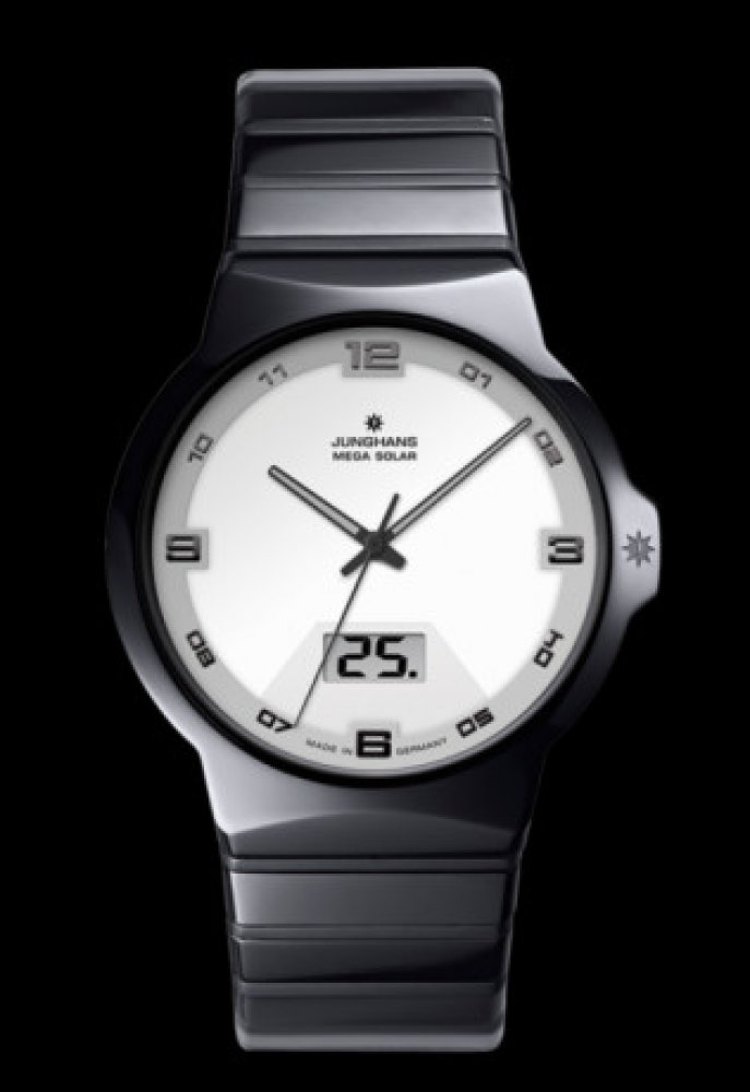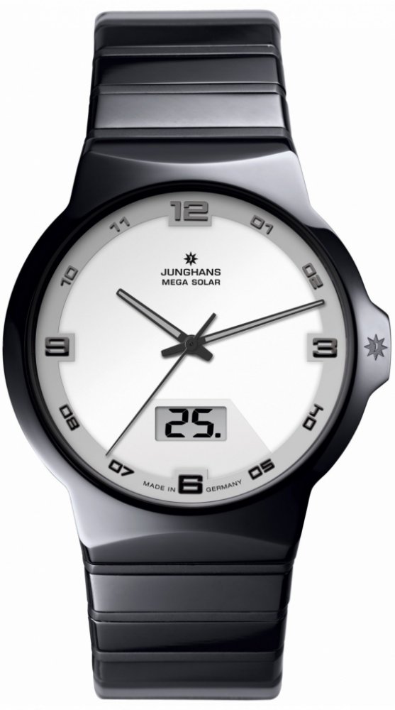 Junghans digitální keramika elegantní pánské solární keramika 50 m 86 g safírové Force kulaté černá bílá motýlková spona