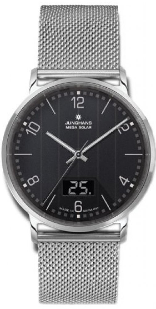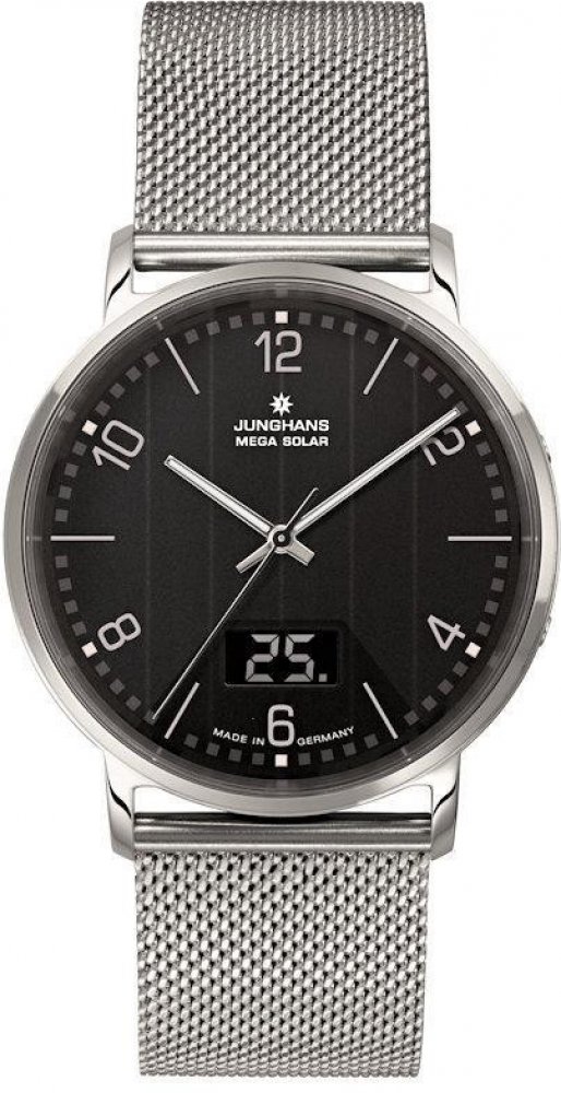Junghans analogové ocel elegantní pánské solární pro běžné použití (30–50 m) 39.0 mm ocel 50 m solární 71.0 g safírové 22.0 cm bez osazení Milano Mega Solar kulaté stříbrná černá s luminiscencí sklapovací přezka 2.1 cm na ruku německé s arabskými číslicemi stříbrná ocel 3.9 cm střední pevná ocel 9.0 mm 21.0 mm 9.0 mm 39.0 mm s dočasným svícením (luminiscence/LED) s nenáročnou údržbou (quartz) bez chytrých funkcí