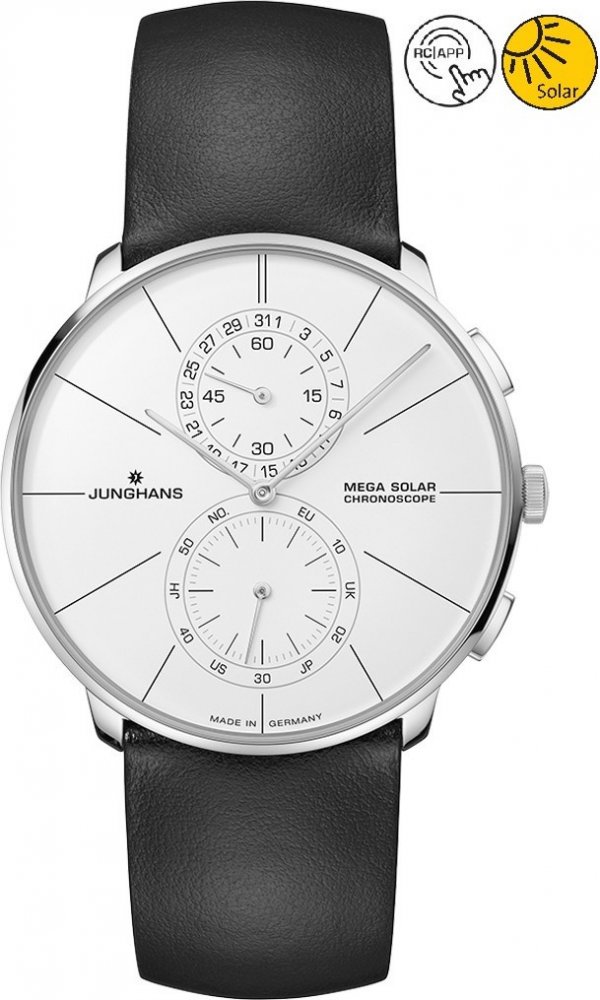 Junghans analogové kůže elegantní pánské solární pro běžné použití (30–50 m) 39.5 mm ocel 50 m solární 35 g safírové bez osazení Meister kulaté černá bílá trnová spona 2.1 cm na ruku německé bez číslic stříbrná ocel 3.95 cm střední pevná ocel 9.5 mm 9.5 mm s nenáročnou údržbou (quartz) s připojením k telefonu (Bluetooth/GPS)
