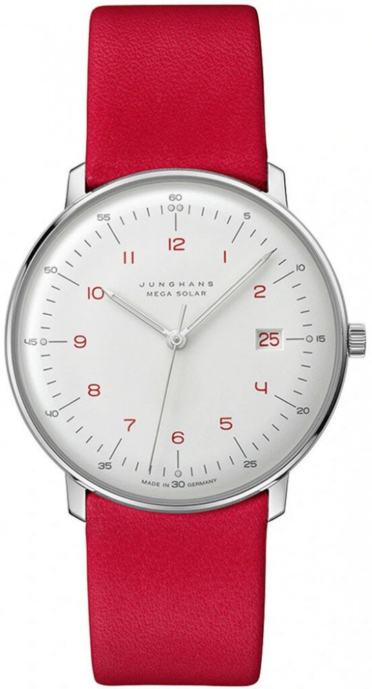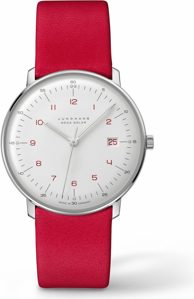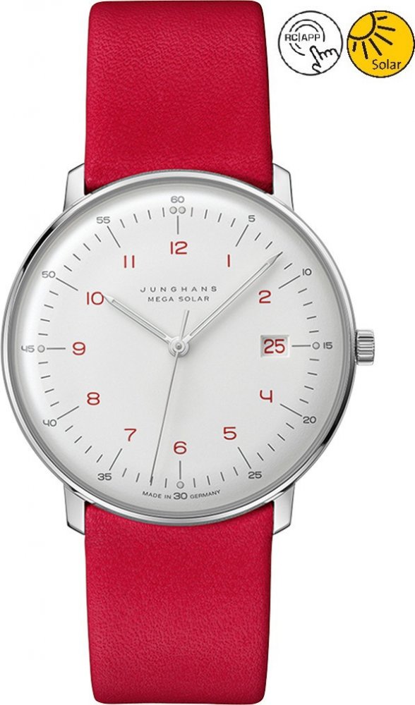 Junghans analogové textil minimalistické unisex solární vhodné k plavání (50–100 m) 38.0 mm ocel 50 m solární 33 g safírové bez osazení Max Bill kulaté červená bílá s luminiscencí trnová spona 2 cm na ruku německé s arabskými číslicemi stříbrná ocel 3.8 cm malé pevná ocel 9.0 mm 9.0 mm s dočasným svícením (luminiscence/LED) bez chytrých funkcí