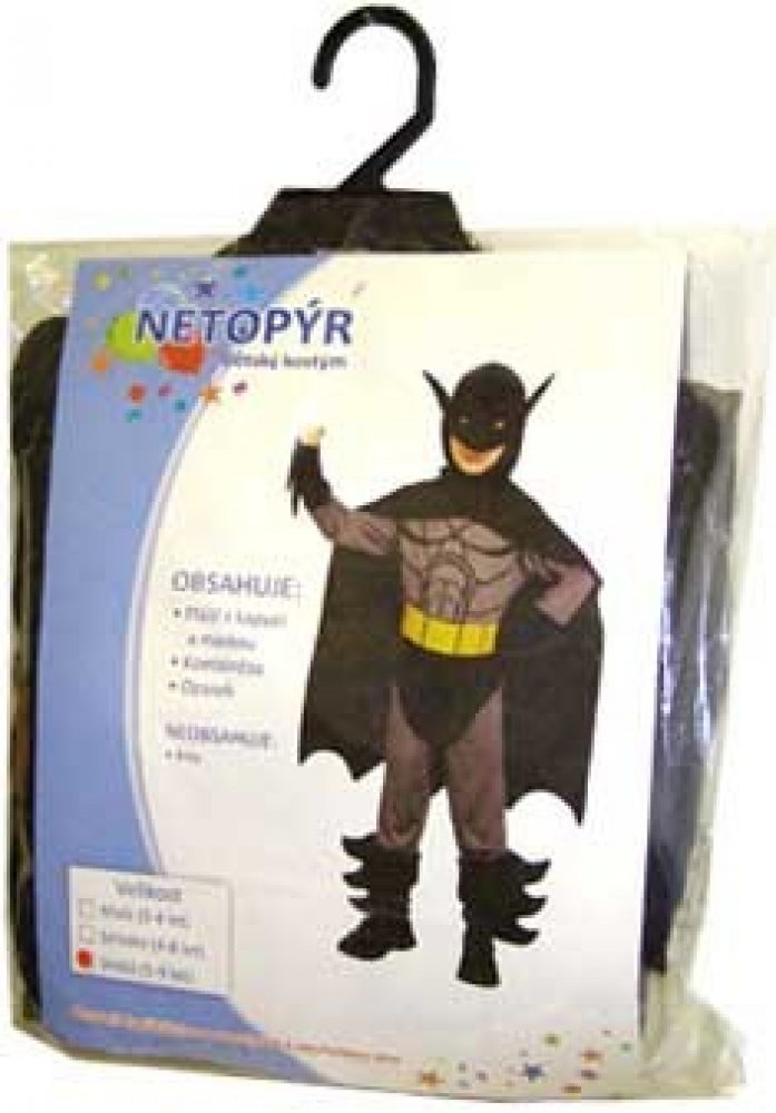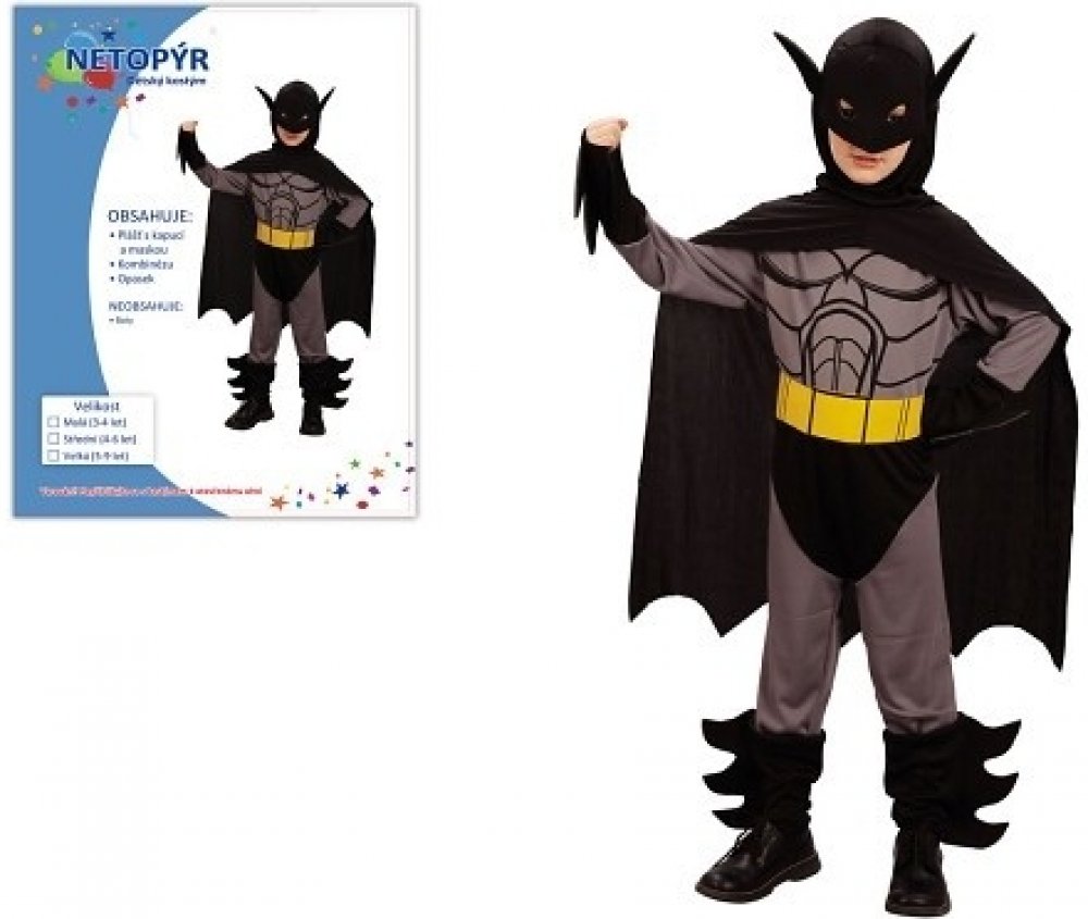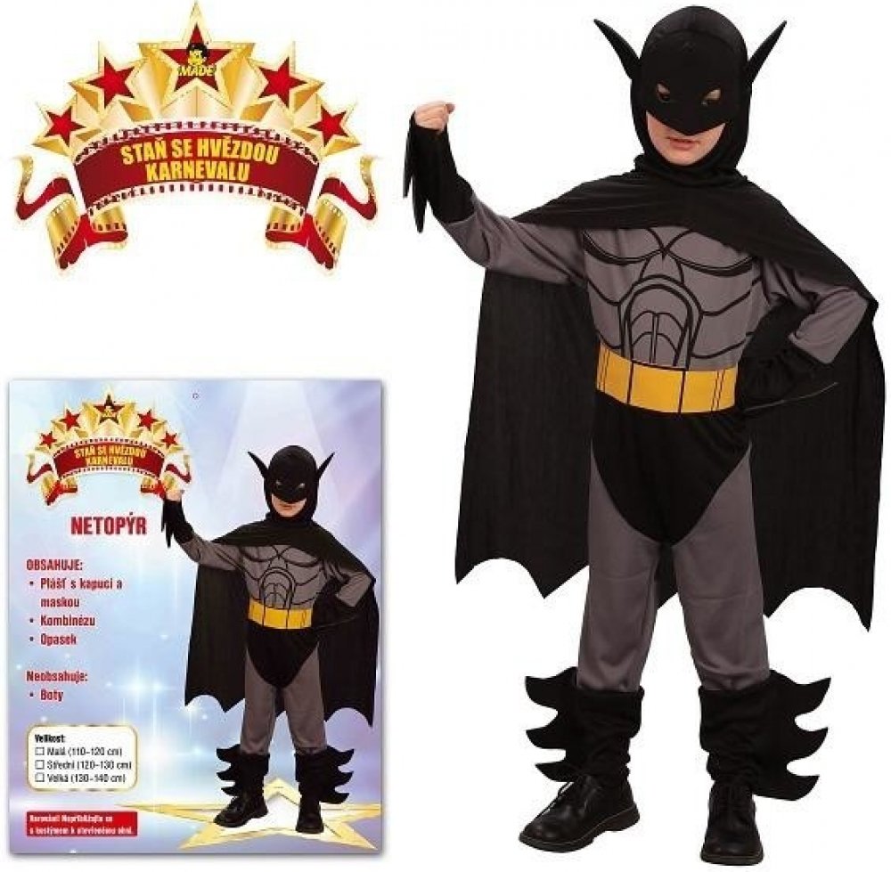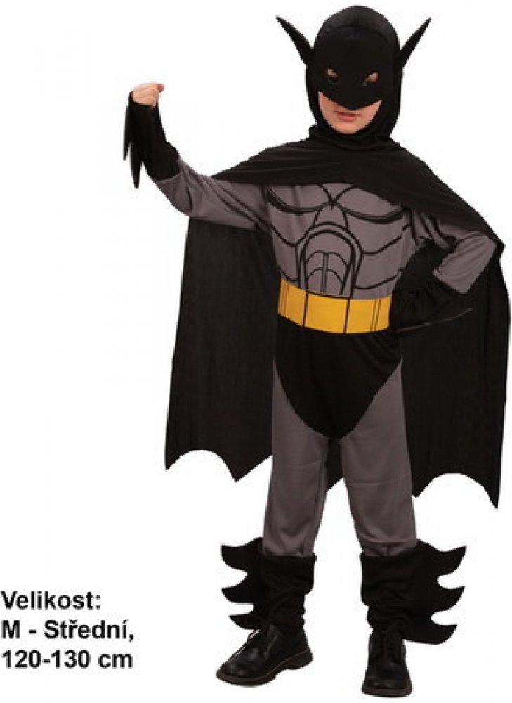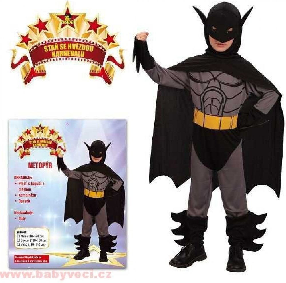 Kostým netopýr, obdoba Batmana jak vystřiženého z amerických komiksů na karneval nebo k dětským hrám. Užijte si na maškarním plese nebo jiné zábavě. Zkuste se vžít do role své postavy a jejího vystupování.