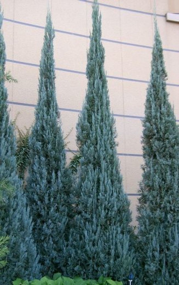 Vzrůst: 4 - 6 m (šířka 1 m) , Stříbřitě modrý