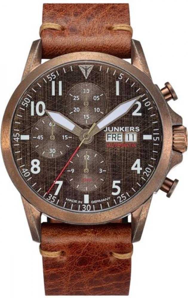 Junkers kůže ocel 100 m 120 g safírové pánské automatické JU 52 kulaté hnědá 2.2 cm