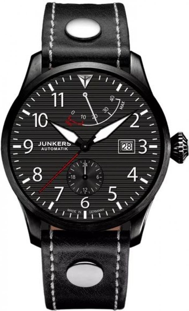 Hodinky Junkers Powerreserve 965.01.02 mají pouzdro vyrobené z ušlechtilé oceli s černou PVD úpravou, v němž pracuje japonský mechanický strojek Miyota 9132 s automatickým nátahem. Ten disponuje ukazatelem data na tradiční pozici třetí hodiny a ukazatelem rezervy chodu na pozici 12. Subčíselník na pozici 6…