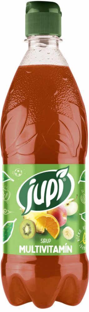 Dodáváme po 6ks. Jupí sirup exotické ovoce s přídavkem vitamínů. Složení : cukr, glukózo-fruktózový sirup, voda, víceovocná štáva z koncentrátu min. 1 % (jablko, ananas, pomeranč, banán, citrón, broskev, kiwi, mango), kyselina: kyselina citrónová, antioxidant: kyselina L-askorbová; vitamíny; aroma; stabilizátory: arabská guma, glycerolestery dřevných pryskyřic; barviva: karoteny, ?-apo-8´-karotena...