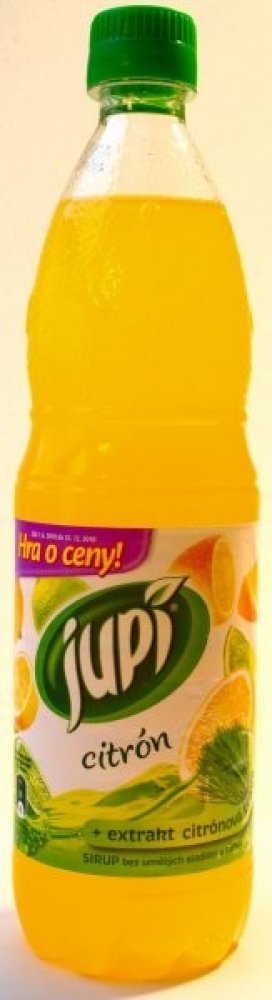 Tradiční sirup Jupí s příchutí citronu, nyní obohacen o vitamíny C, D, B1, B2 a zinek