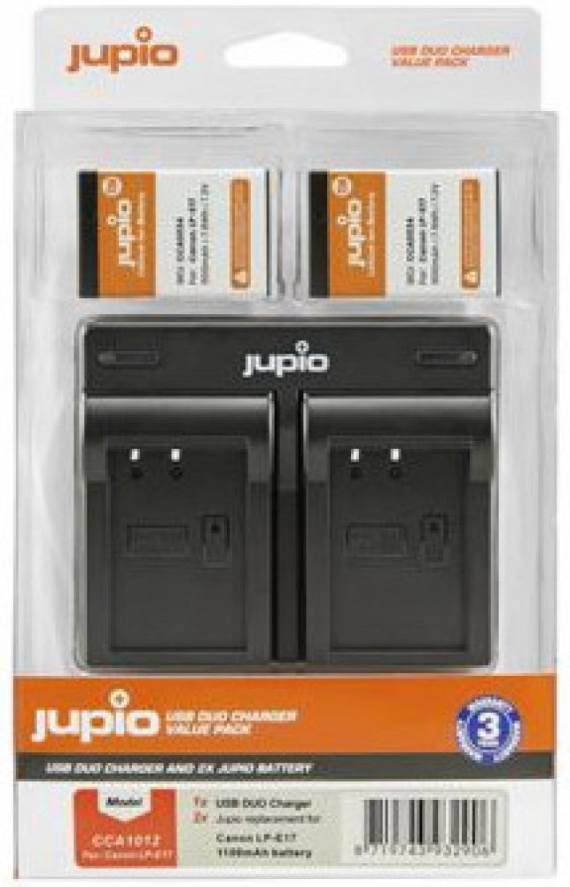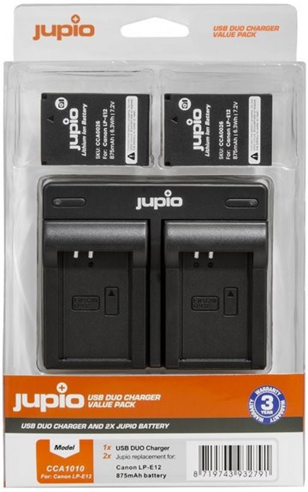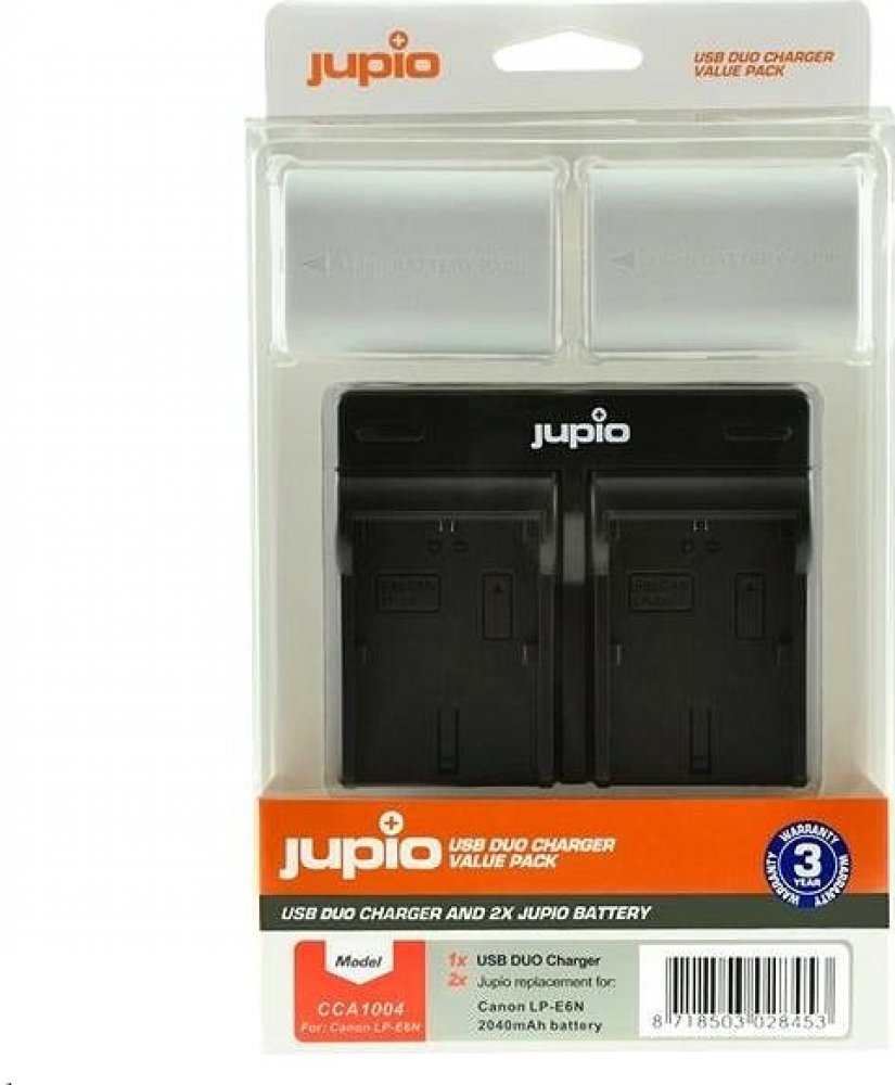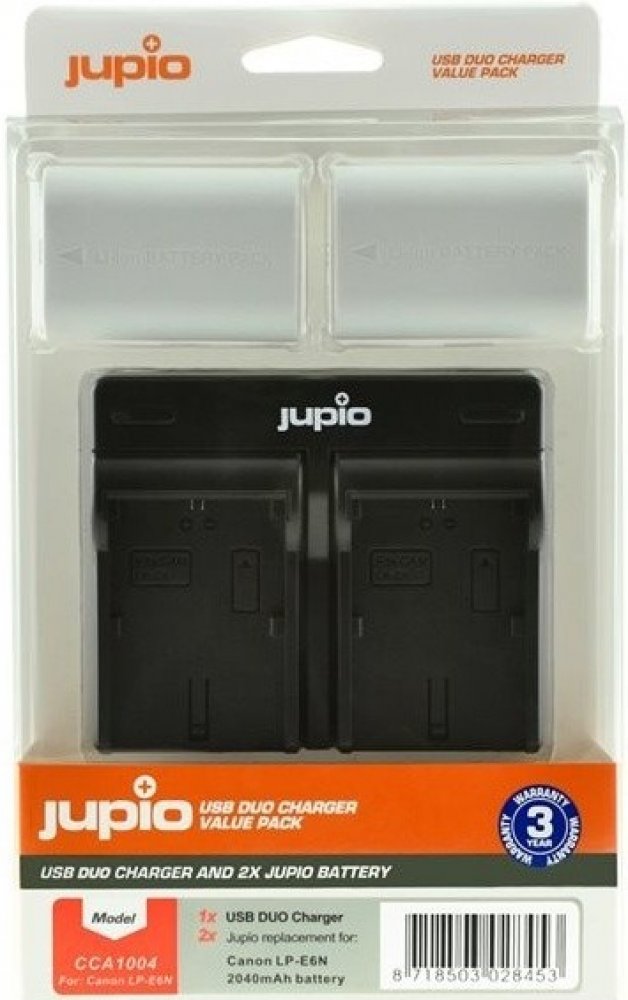 Set duální nabíječky a 2 ks baterií Jupio LP-E6N ULTRA. Baterie Jupio LP-E6N s kapacitou 2040 mAh je určena pro kompatibilní digitální fotoaparáty Canon.