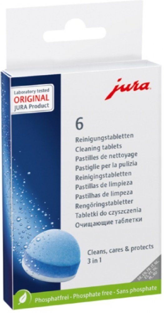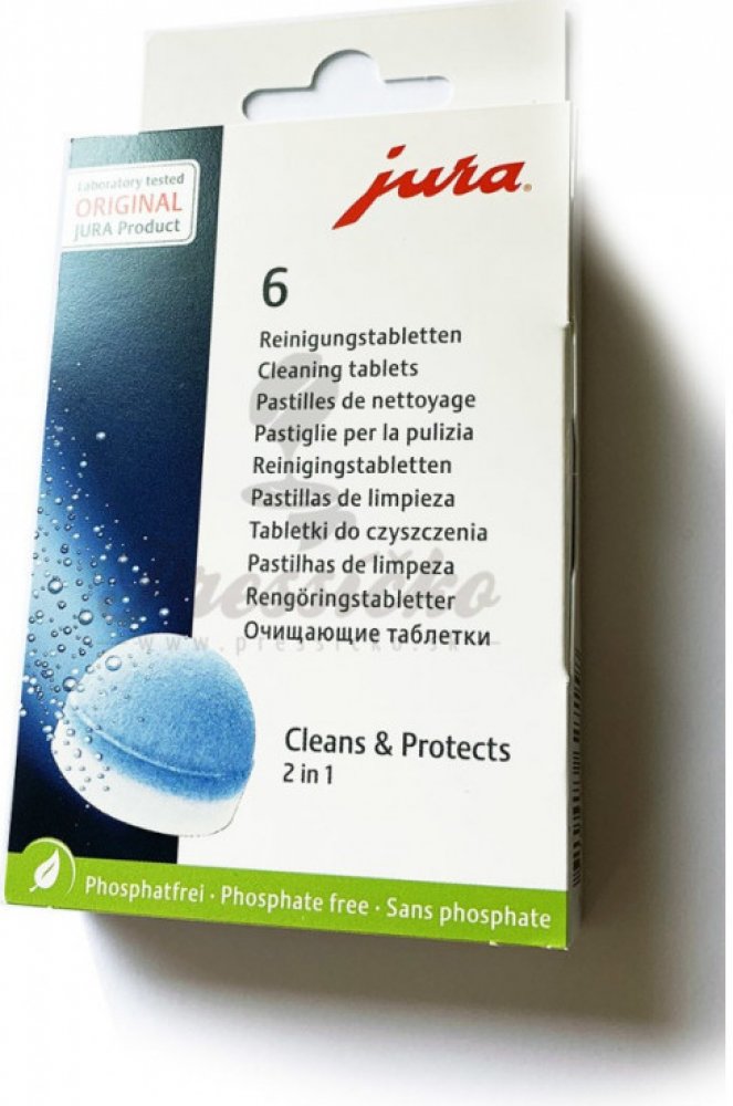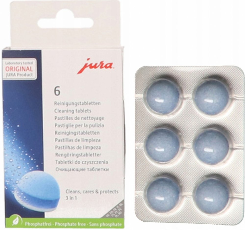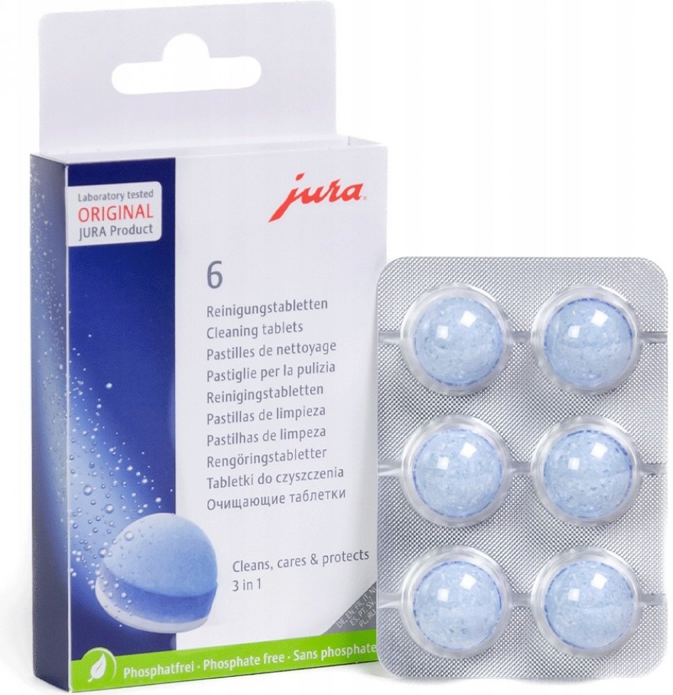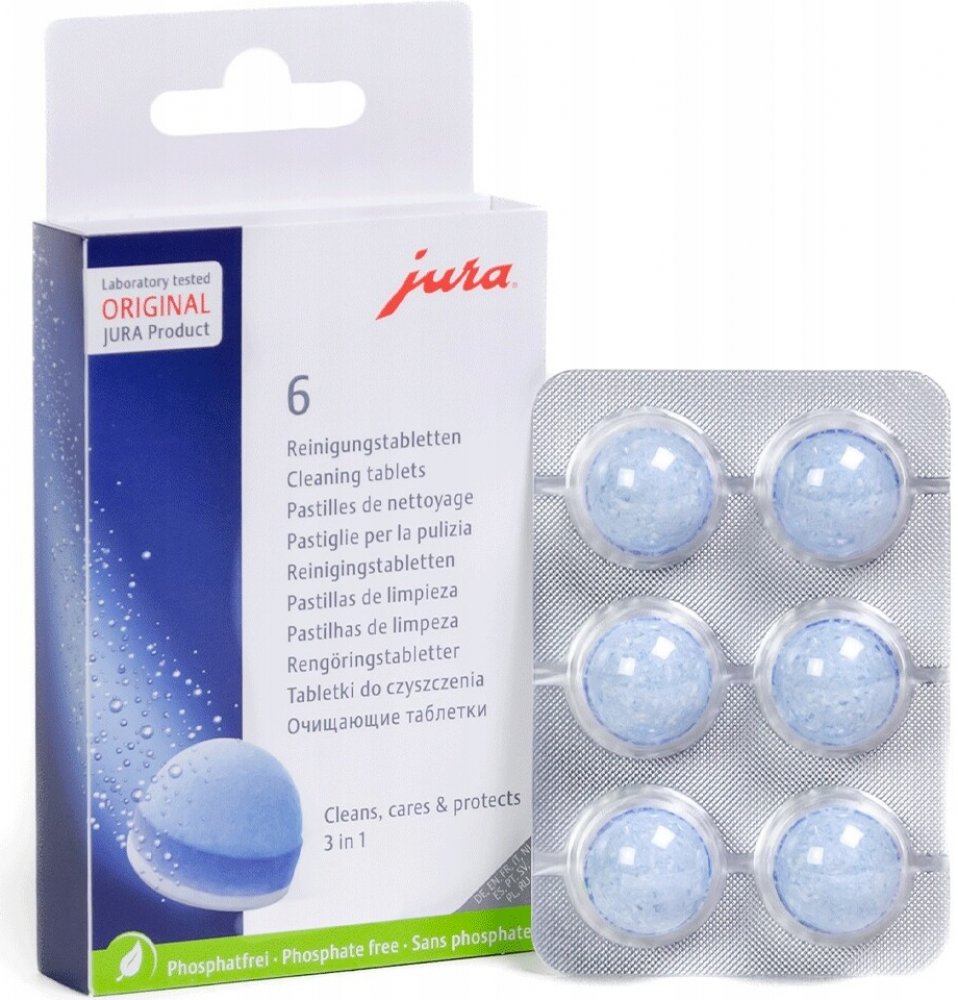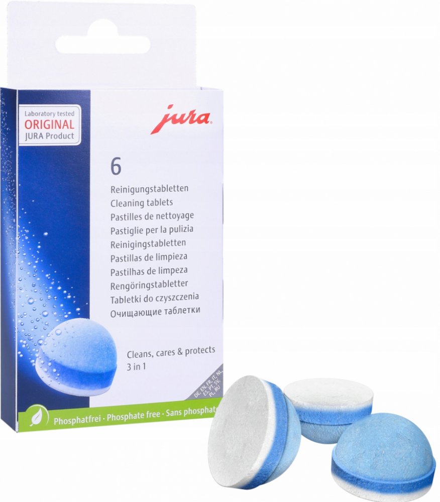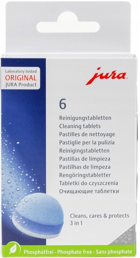 Používejte pouze originální JURA čistící tablety k čištění a ochraně Vašeho JURA automatického kávovaru. Pouze tyto tablety jsou dokonale sladěny s automatickým čisticím programem.