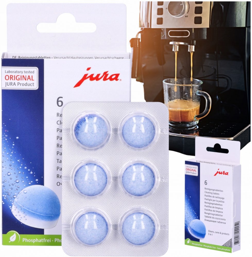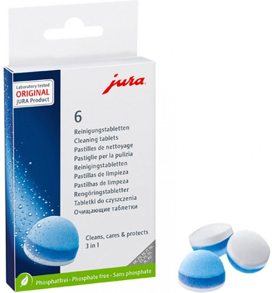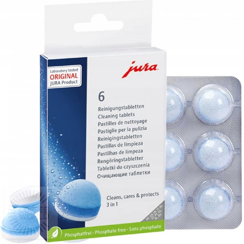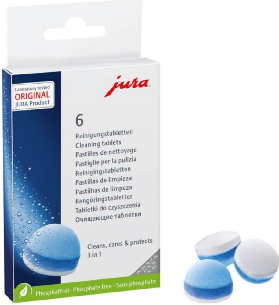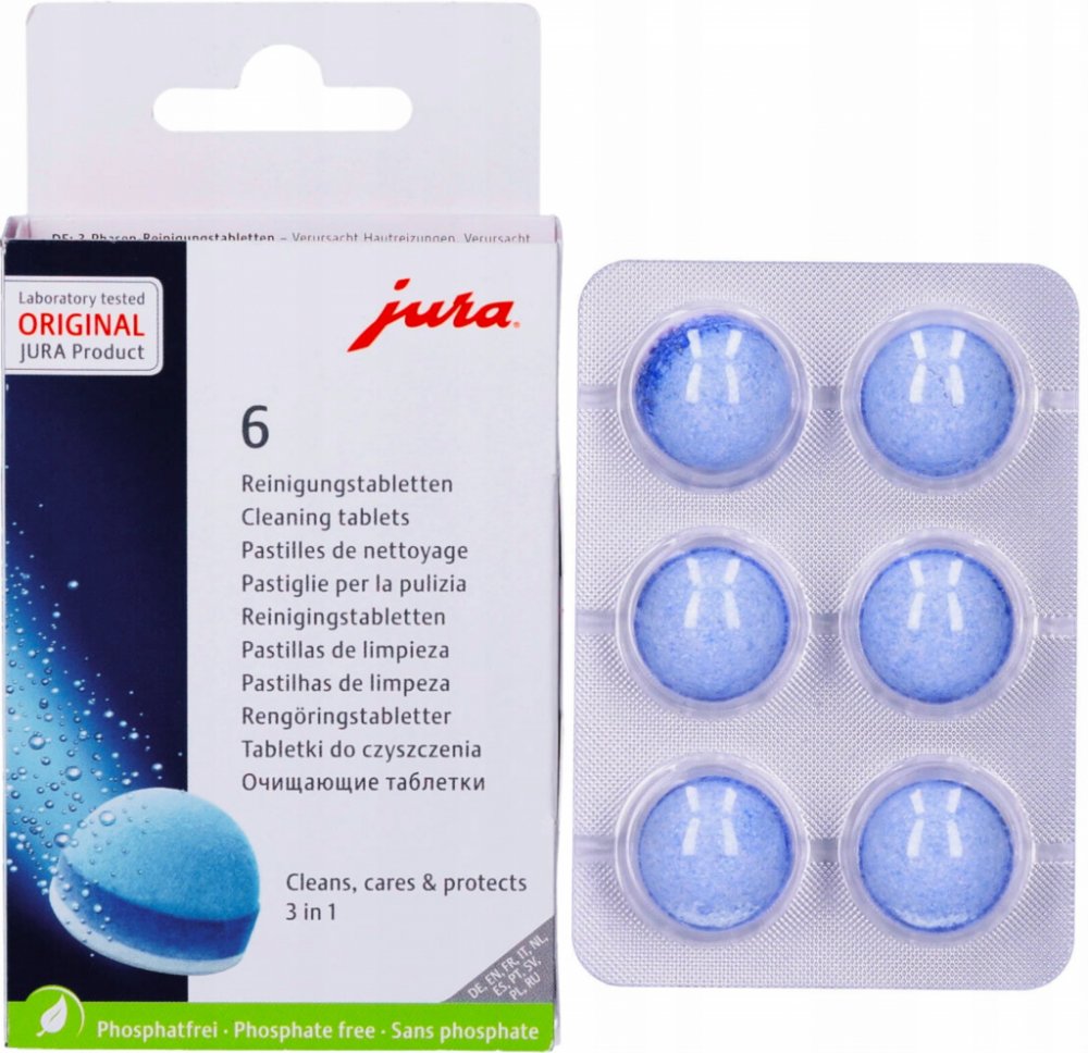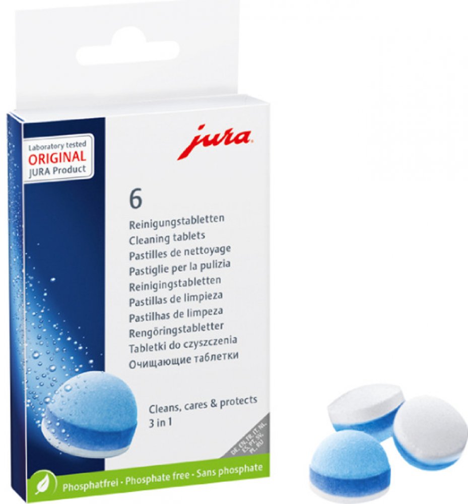 Používejte pouze originální JURA čistící tablety k čištění a ochraně Vašeho JURA automatického kávovaru. Pouze tyto tablety jsou dokonale sladěny s automatickým čisticím programem.