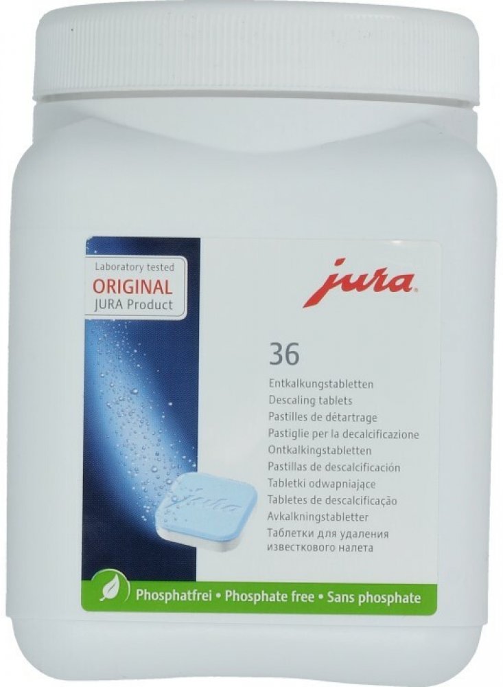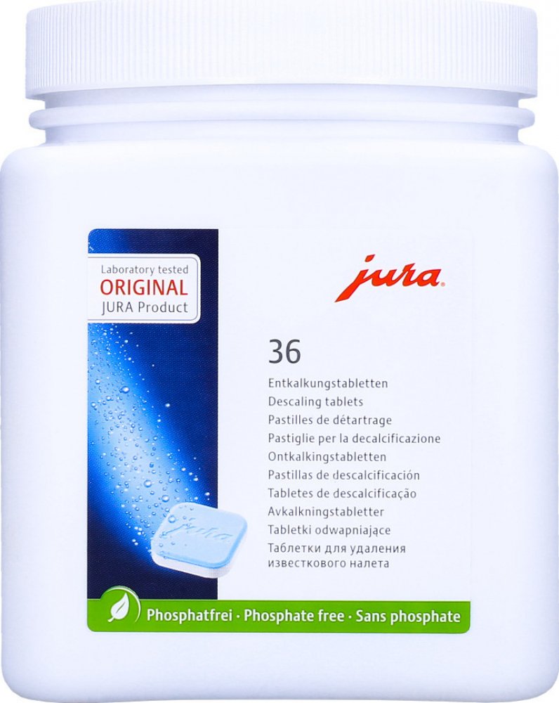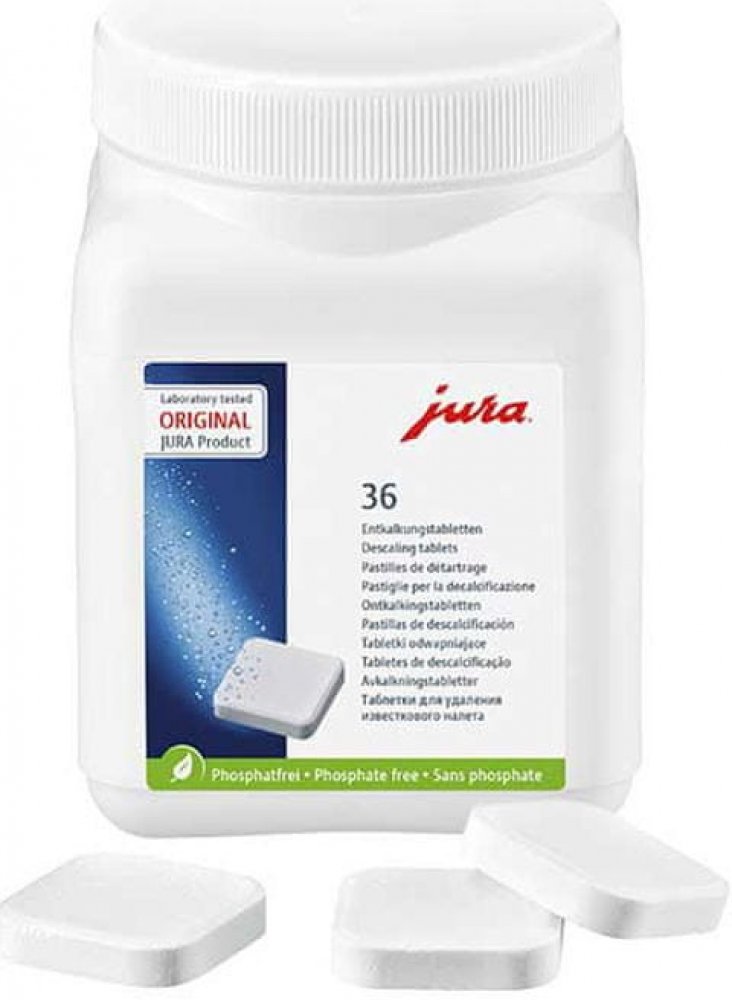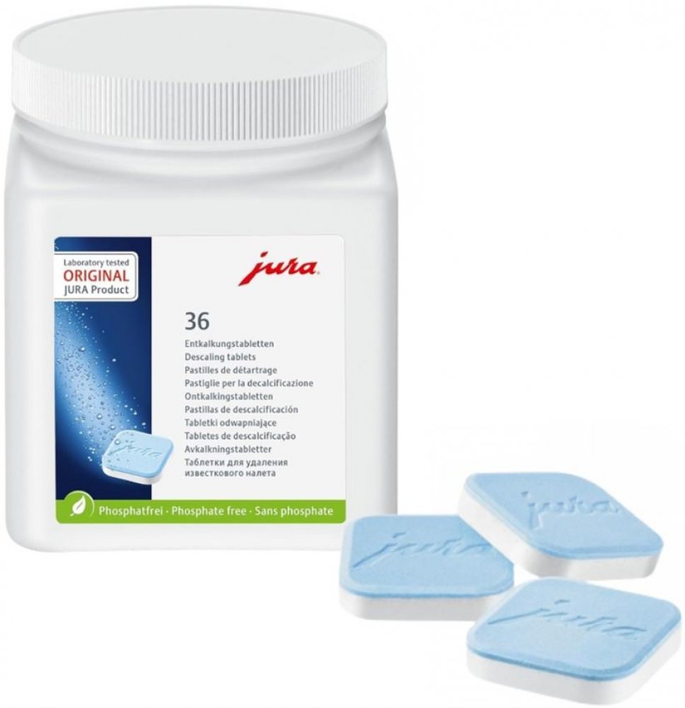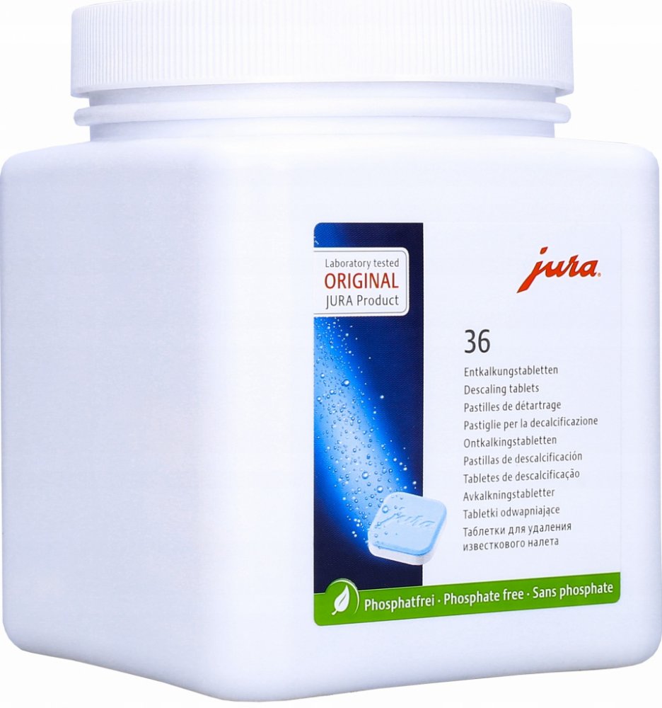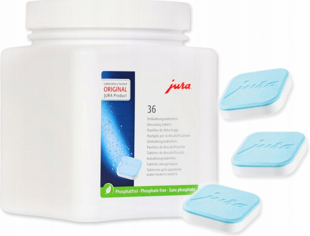 Značka JURA má dlouhodobou tradici ekologické šetrnosti a úsporného hospodaření se zdroji a energiemi. Proto JURA i v případě originálních odvápňovacích tablet využívá výhradně bezfosfátovou recepturu. Optimalizovaná receptura zaručuje hygienu s certifikací TÜV současně se šetrností k životnímu prostředí a perfektní kvalitou připravené kávy.