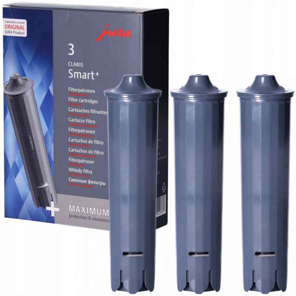 Šálek kávy se z 98 % skládá z vody. K přípravě šálku ideální kávy je proto nezbytná studená, čerstvá voda. Filtr na vodu CLARIS Smart, vyvinutý inženýry JURA Poprvé díky moderní technologii RFID automatický kávovar komunikuje nepřetržitě s filtrem. Kávovar rozpozná, zda byl filtr umístěn do nádrže, a automaticky aktivuje příslušný režim. Speciální umístěný senzor shromažďuje informace o spotřebě filtru a informuje uživatele o využití jeho kapacity. Toto řešení zajišťuje, že výměna filtru ještě nikdy nebyla jednodušší a navíc zaručuje jeho optimální využití.