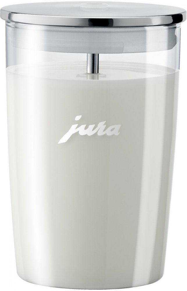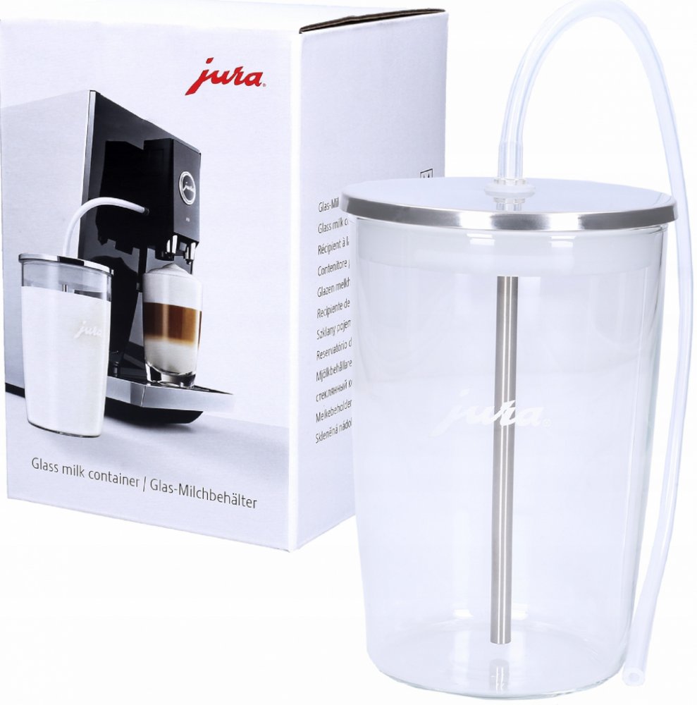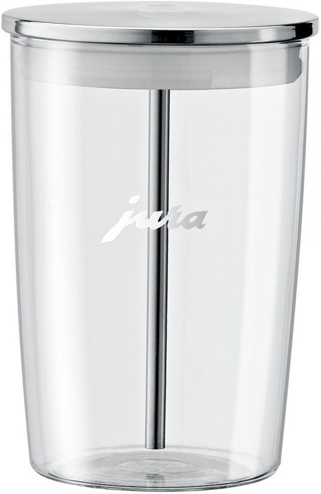 Skleněná nádoba na mléko je nepostradatelným doplňkem pro všechny milovníky kávy, kteří svou rodinu a hosty čas od času rádi rozmazlují módními nápoji jako je flat white, latte macchiato nebo cappuccino. Perfektně sladěná s typickými liniemi designu značky JURA, jednoduchá na skladování v lednici a připravená na připojení ke kávovaru dle potřeby. Trubička na nasávání mléka je připojena ve správné výšce, a proto se mléko s lehkostí nasaje a napění. Nádoba má objem 0,5 litru a je vhodná pro mytí v myčce na nádobí.