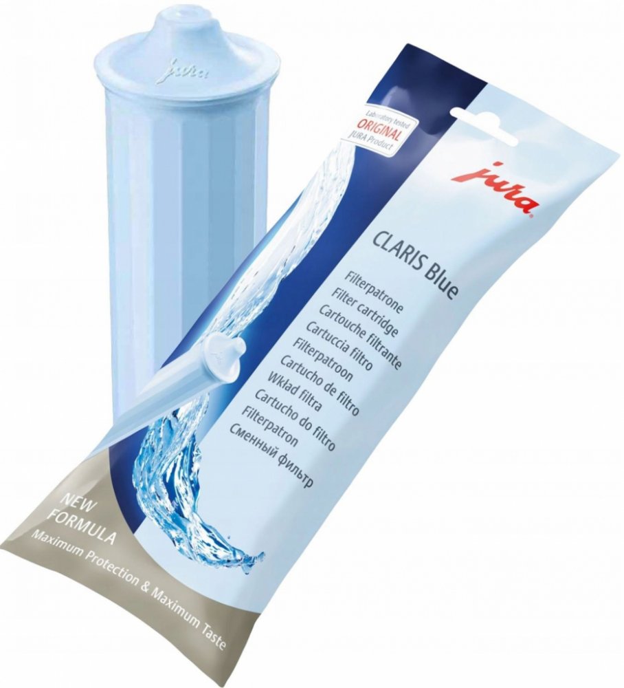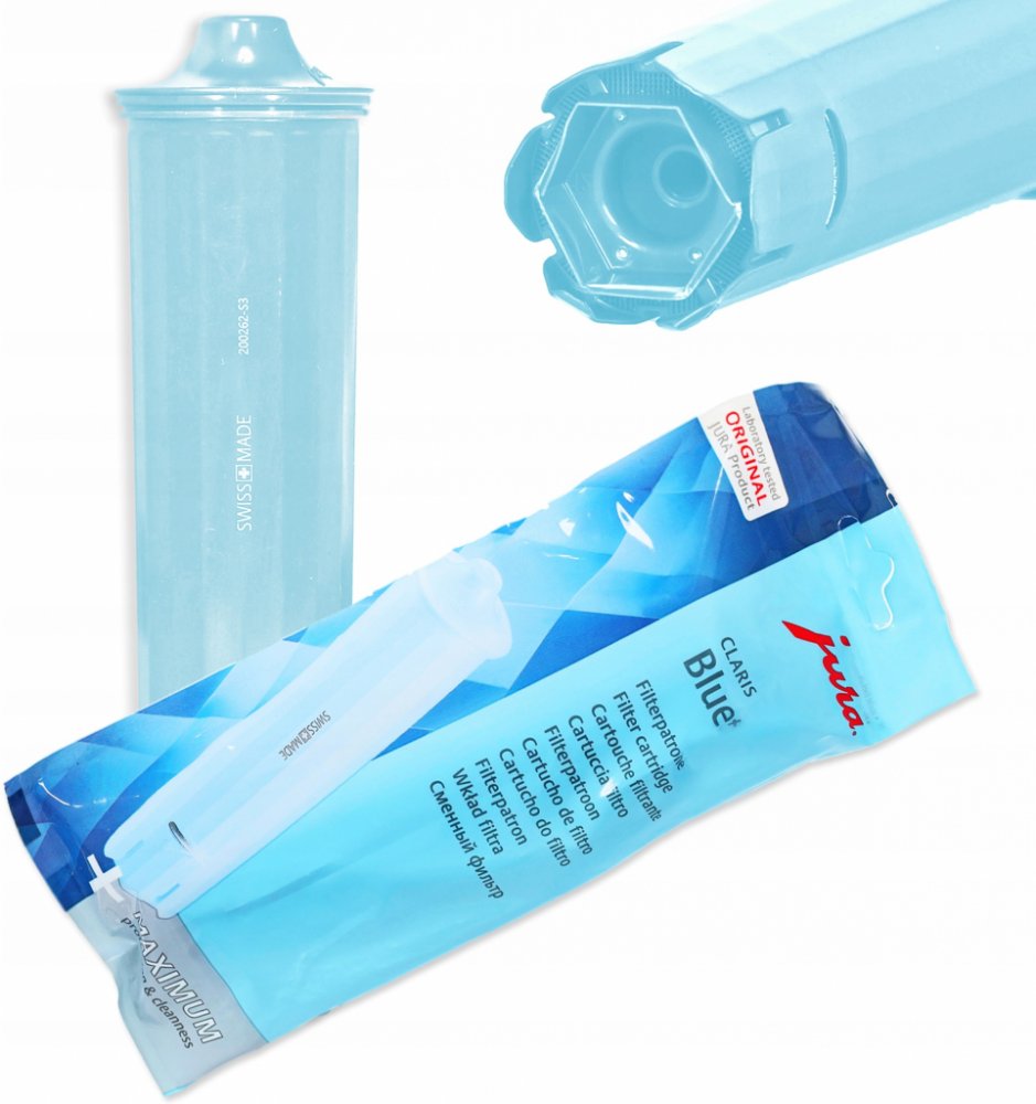 Vodní filtr Claris Blue+ byl vyvinut speciálně pro plnoautomatické kávovary Jura a jednoduše se vkládá do nádržky na vodu. Na svém spodním konci má vodní filtr Blue+ také depot s přírodními aktivními látkami, které stabilizují vodu v nádržce, a tím snižují usazování vodního kamene v oblasti dna nádržky. To funguje bez jakékoliv další energie nebo působení, pouze díky přirozenému pohybu vody v nádrži, což znamená, že voda vždy snadno protéká depem. Horní část filtrační patrony CLARIS nadále filtruje přesné množství vody potřebné k uvaření dokonalého šálku kávy pomocí iontové výměny a aktivního uhlí na principu upflow.