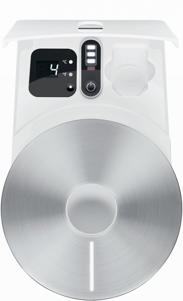 Pohodlné a přímé doplňování mléka bez namáhavého odnímání nádoby na mléko, digitální ukazatel teploty a nasazovací hliníkové víko optimálně přizpůsobené k nádobě umožňují velmi snadnou manipulaci a nejvyšší komfort obsluhy.